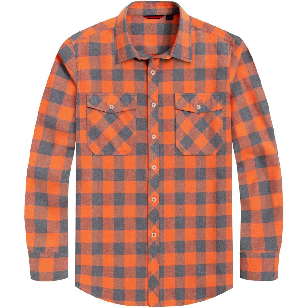 J.VER Flannel Shirt for Men Plaid Long Sleeve Casual Button Down Shirts Regular Fit Cotton Buffalo Checkered Top with Pockets(Orange)