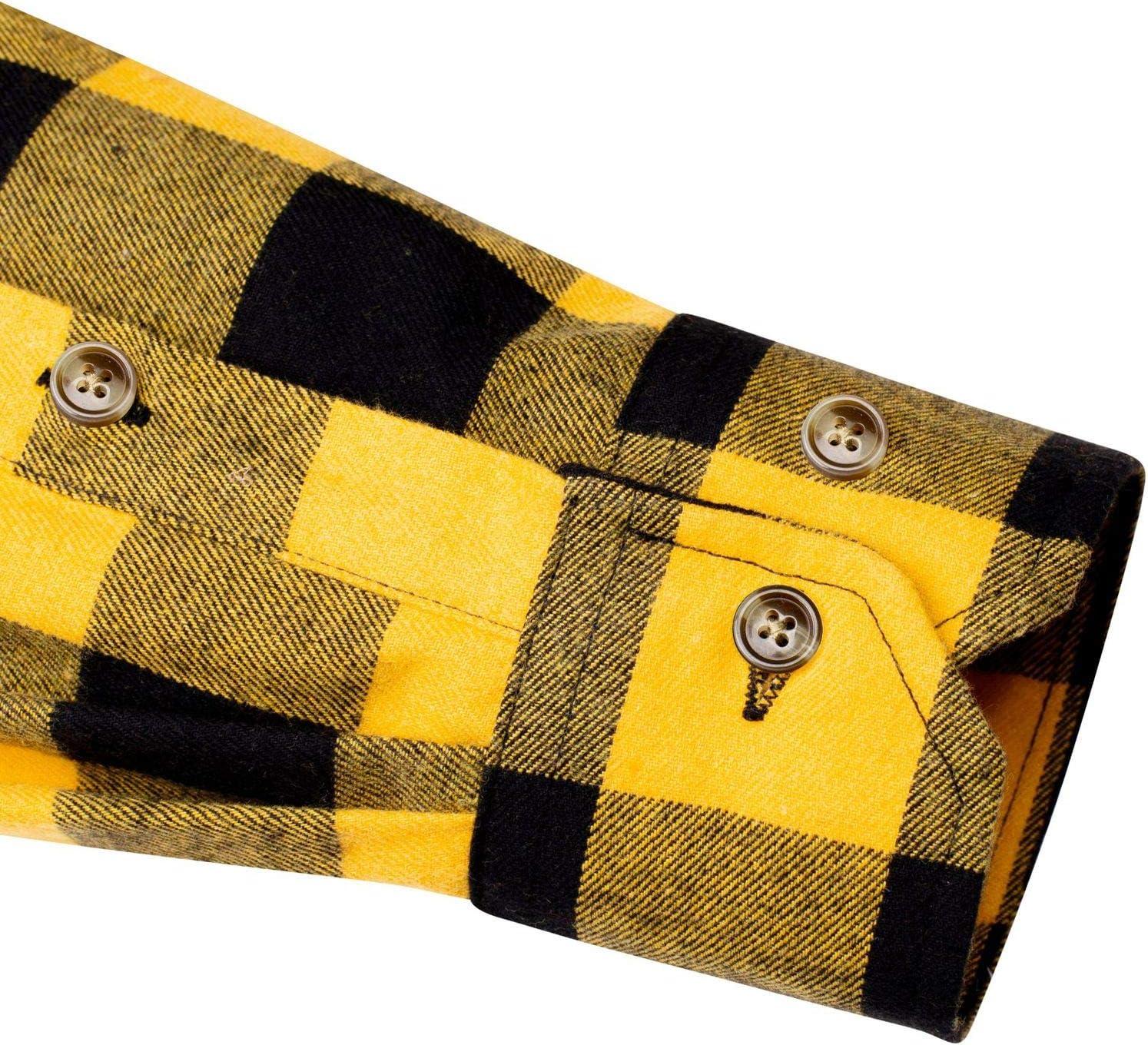 J.VER Flannel Shirt for Men Plaid Long Sleeve Casual Button Down Shirts Regular Fit Cotton Buffalo Checkered Top with Pockets(Yellow Black)