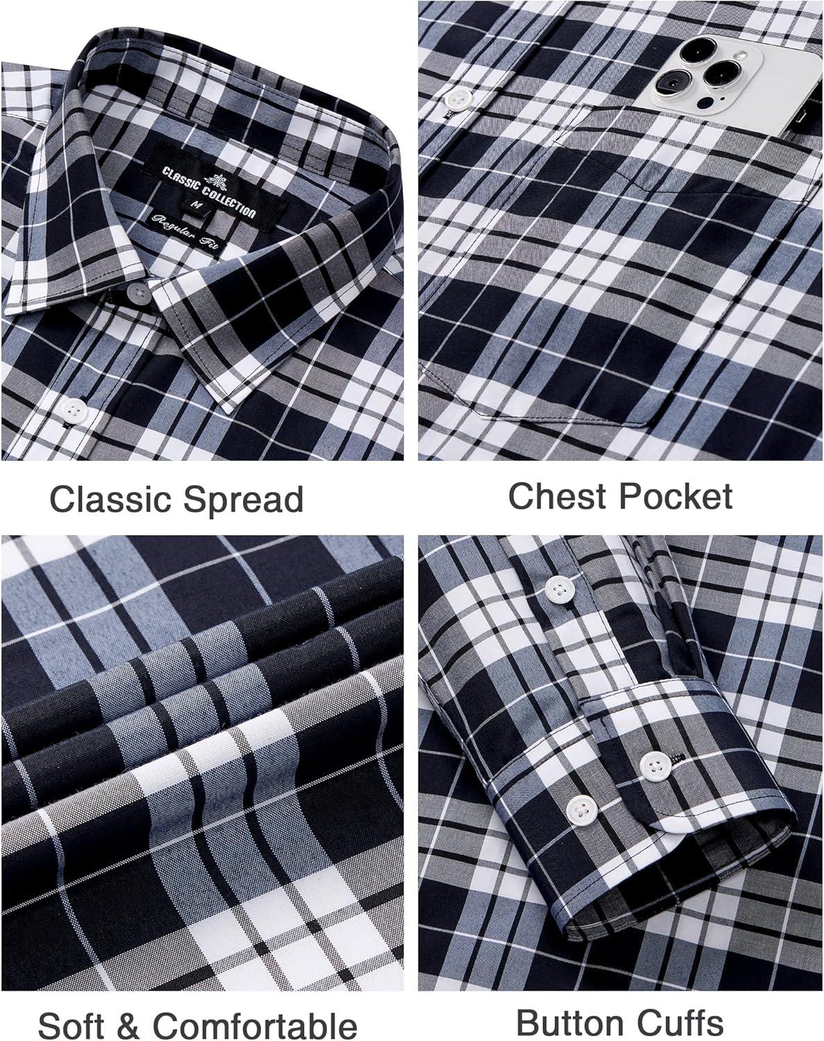 J.VER Long Sleeve Shirts for Men Cotton Plaid Button Down Shirt Business Casual Work Top with Pocket(Black)