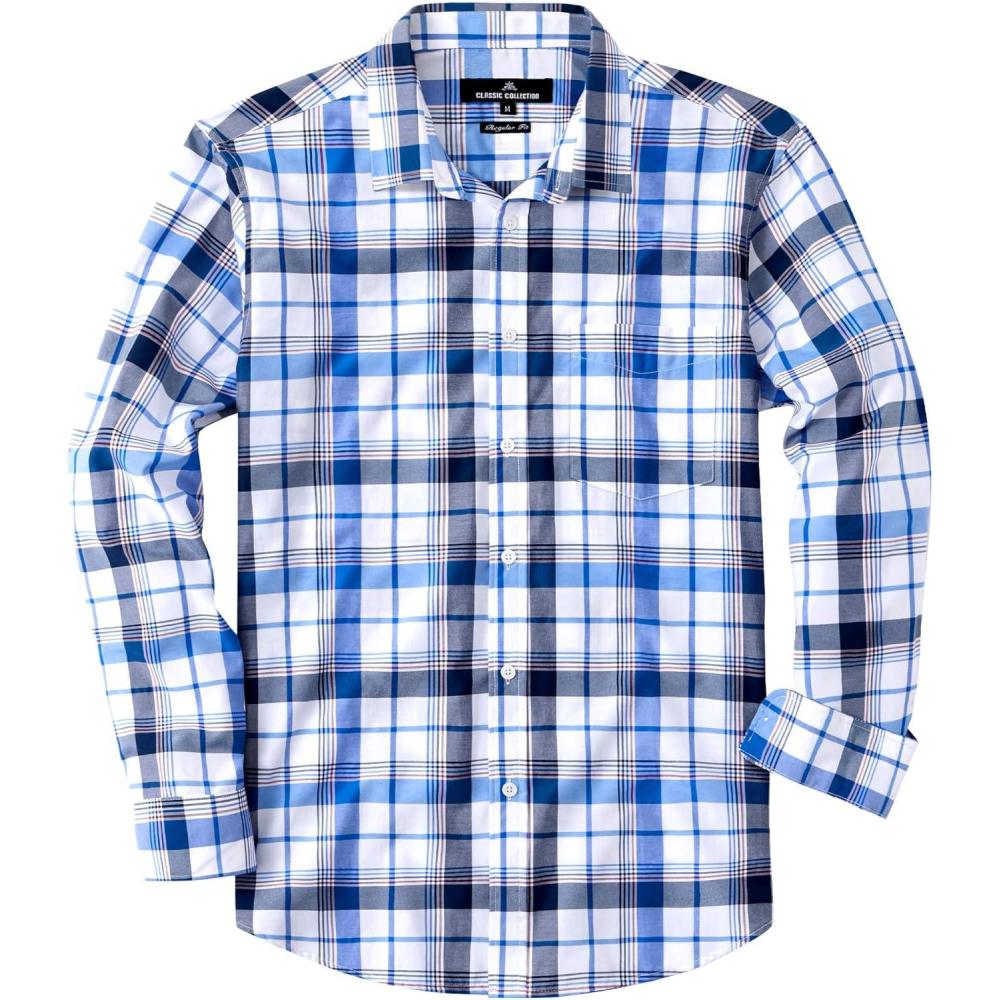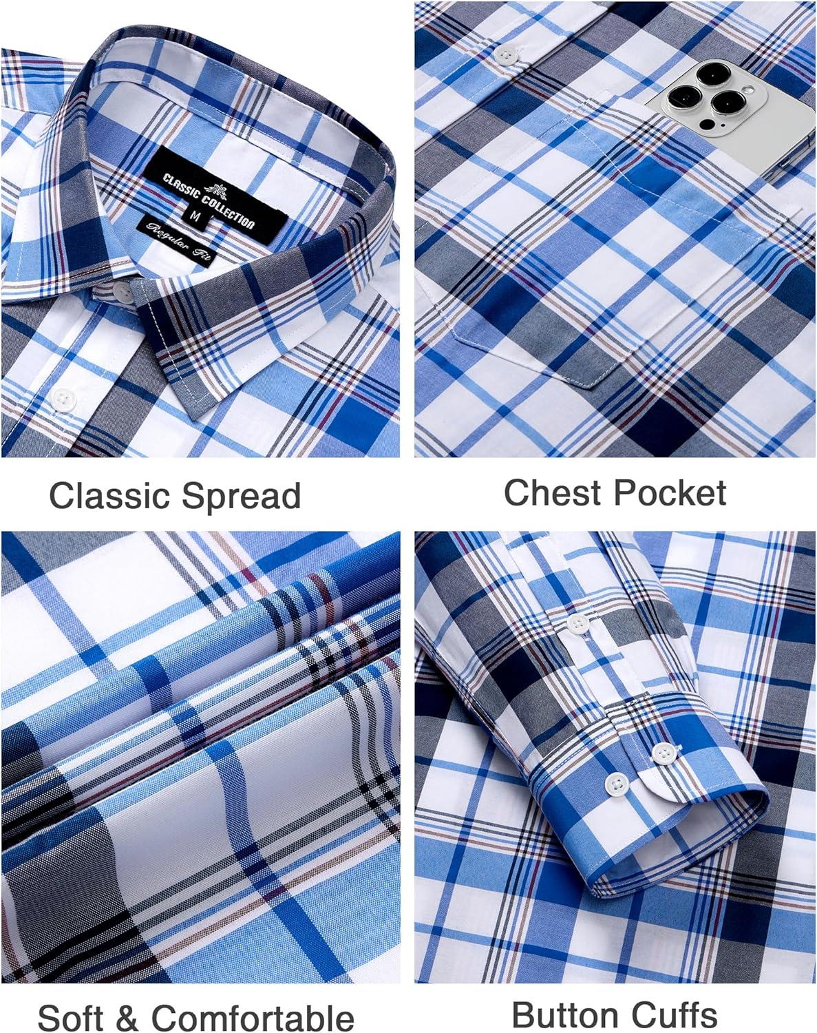J.VER Long Sleeve Shirts for Men Cotton Plaid Button Down Shirt Business Casual Work Top with Pocket(Blue)