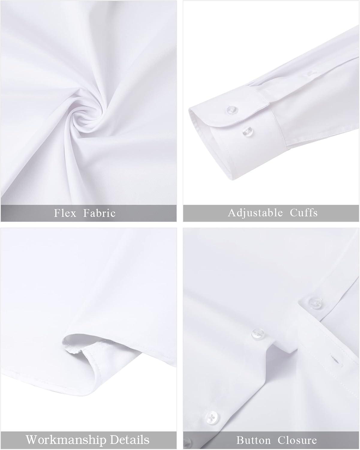 J.VER Men’s Banded Collar Dress Shirt Mandarin Long Sleeve Button Down Shirts Stretch Collarless Tops with Pocket(White)
