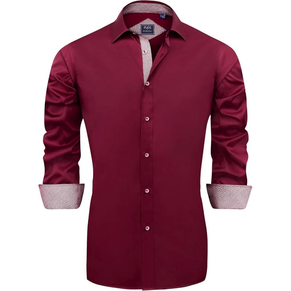 J.VER Men’s Casual Long Sleeve Stretch Dress Shirt Wrinkle-Free Regular Fit Button Down Shirts(Burgundy Red)