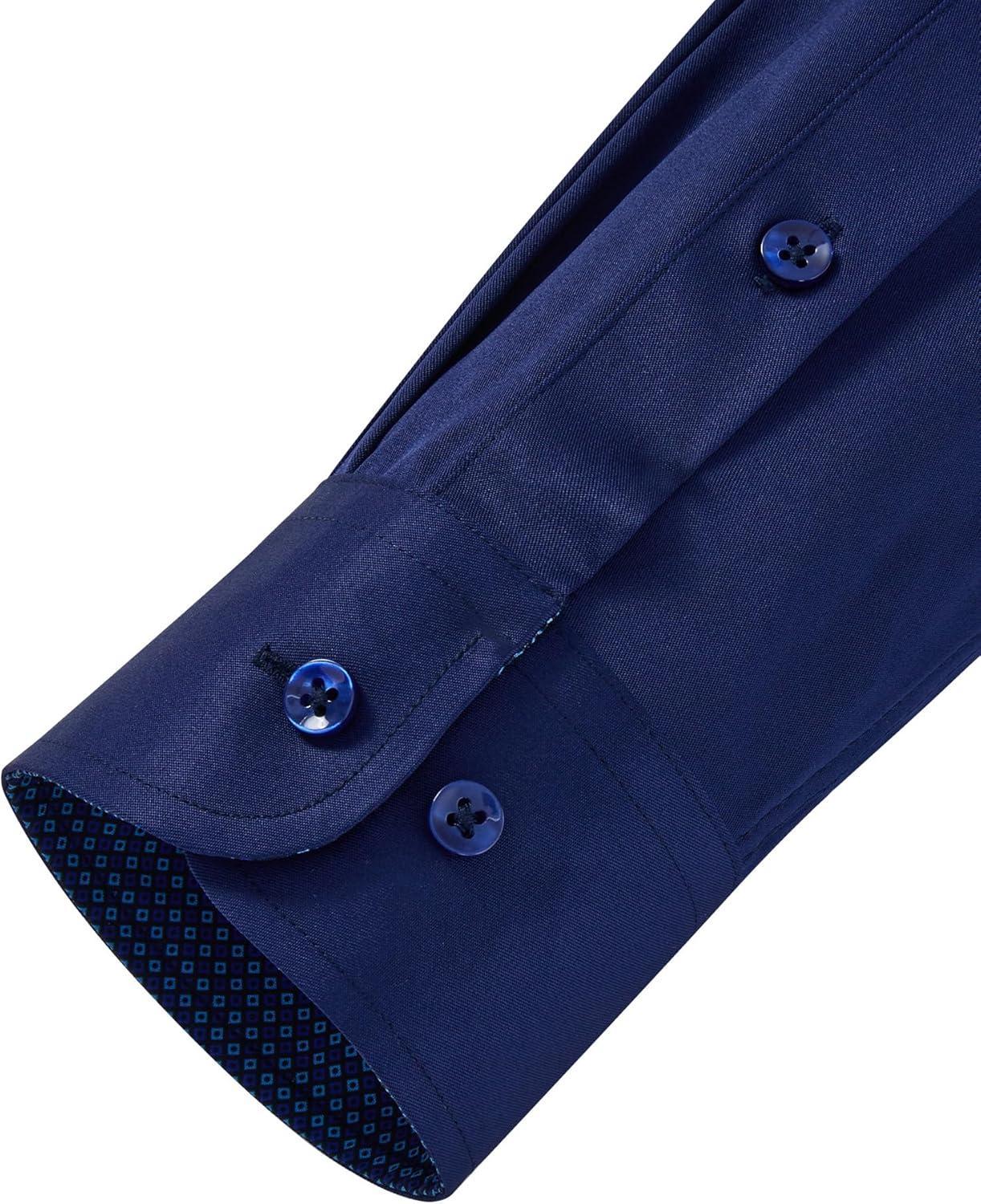J.VER Men’s Casual Long Sleeve Stretch Dress Shirt Wrinkle-Free Regular Fit Button Down Shirts(Navy / Blue)