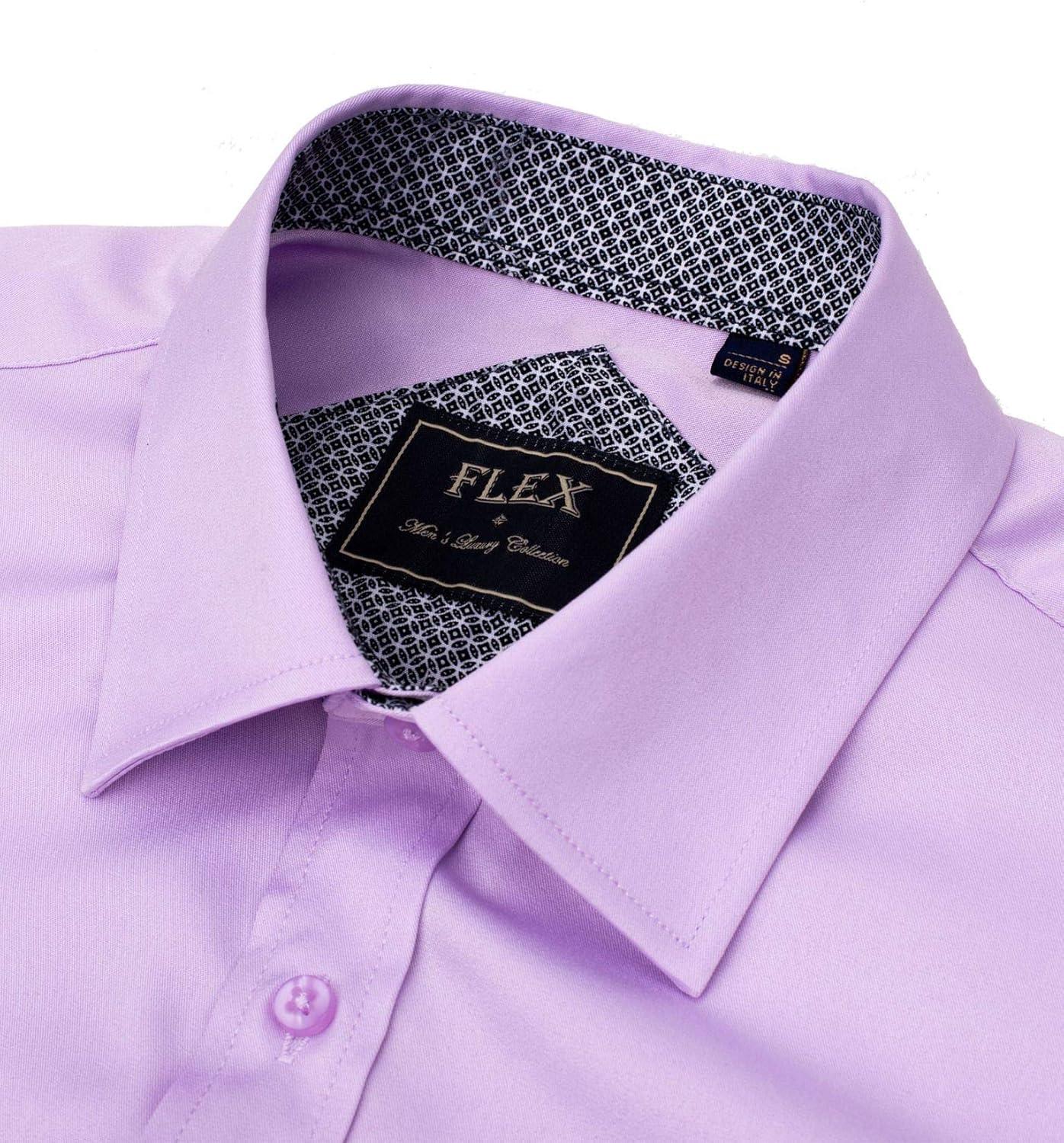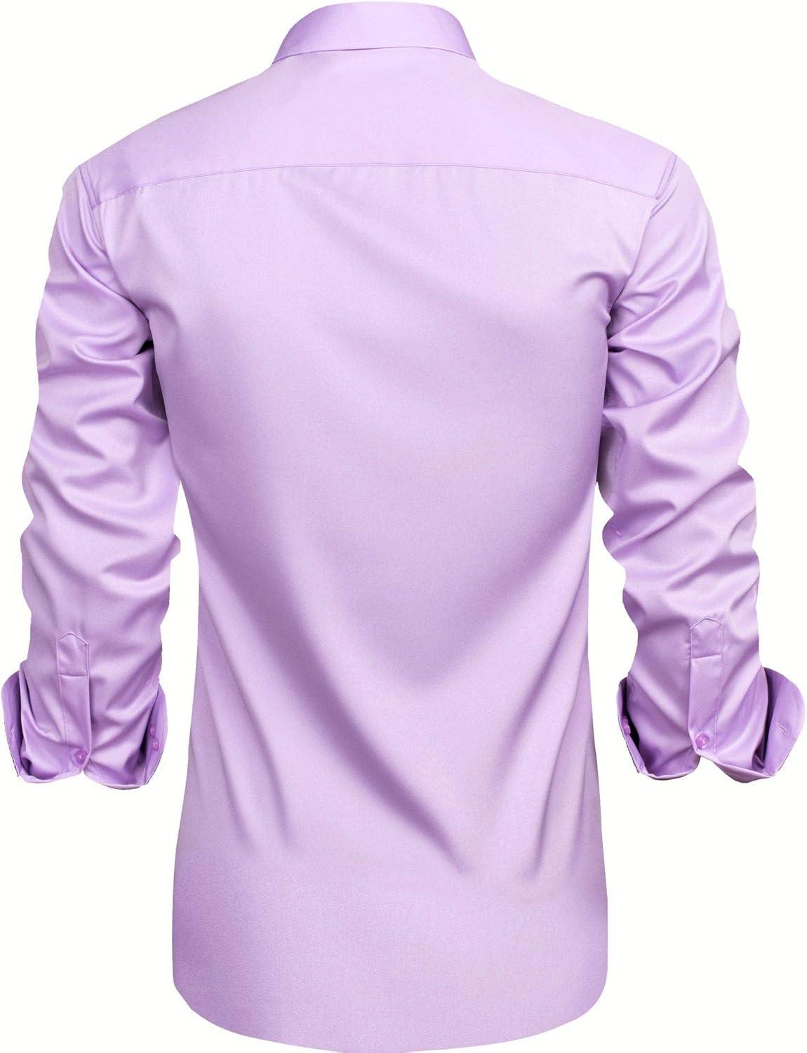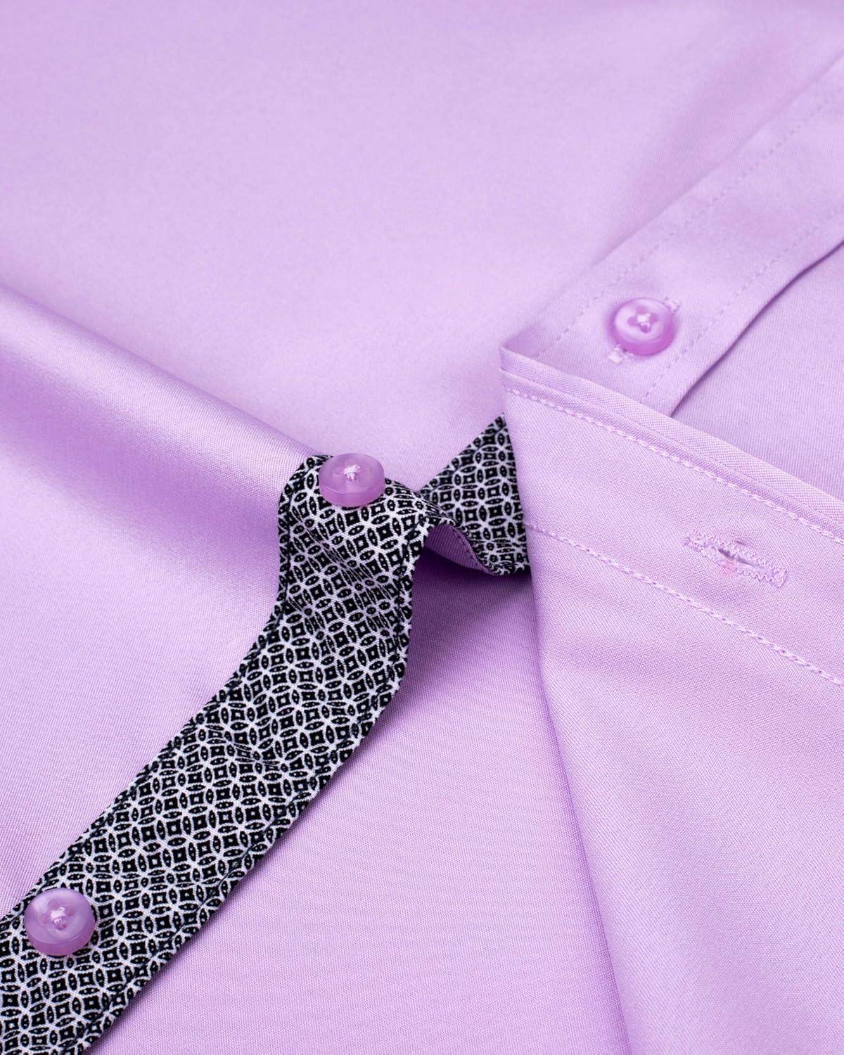 J.VER Men’s Casual Long Sleeve Stretch Dress Shirt Wrinkle-Free Regular Fit Button Down Shirts(Pink Purple)
