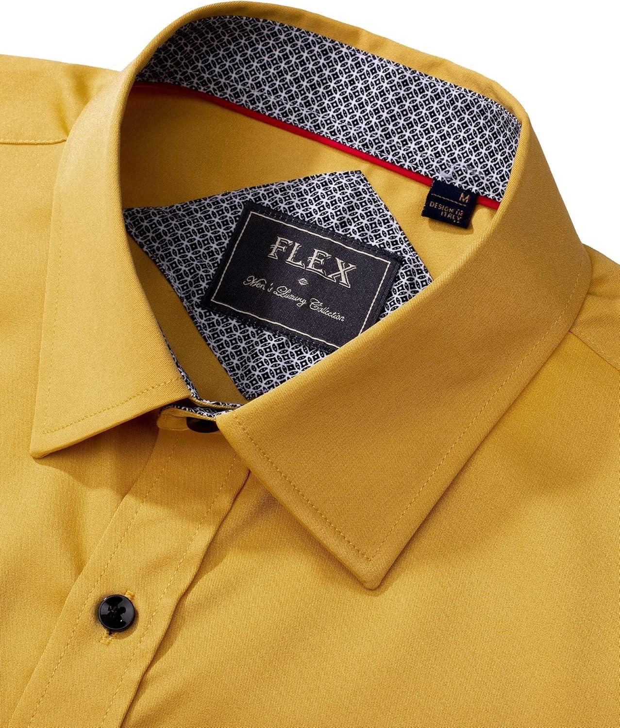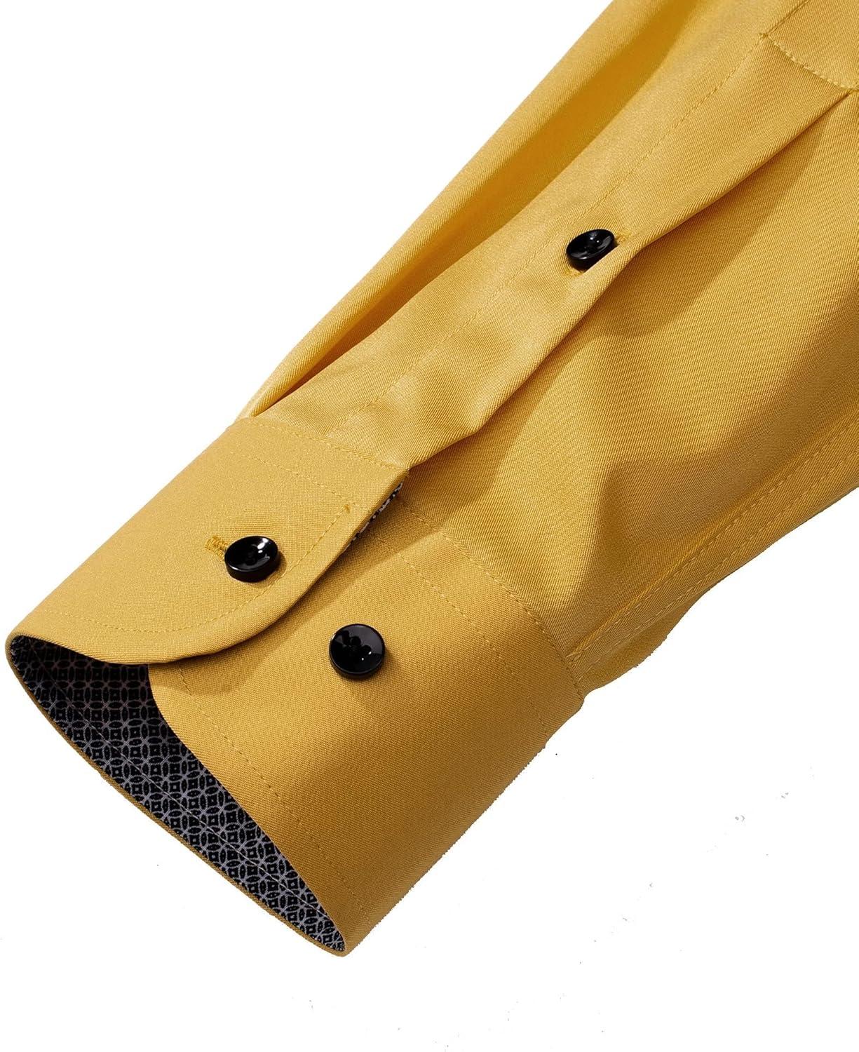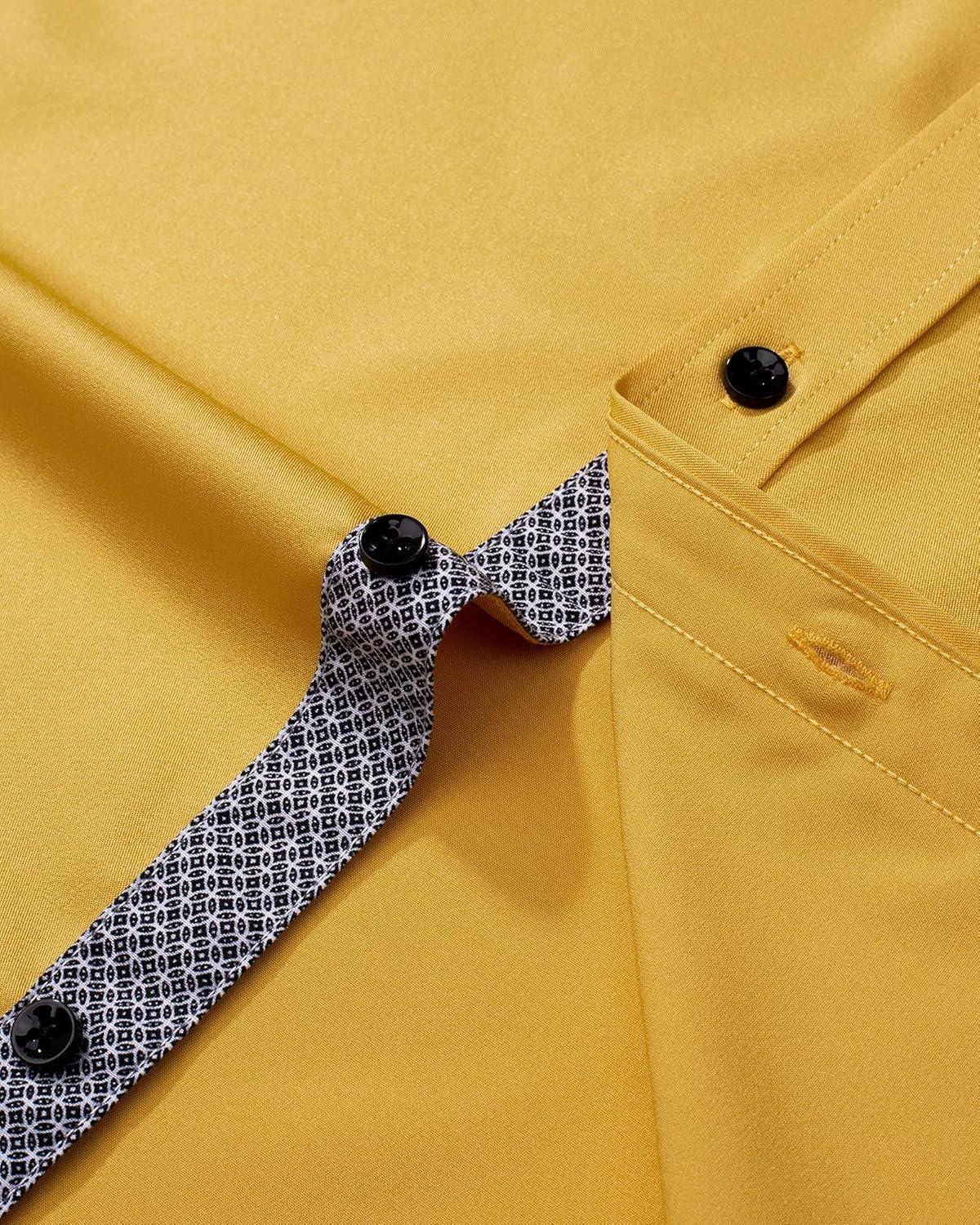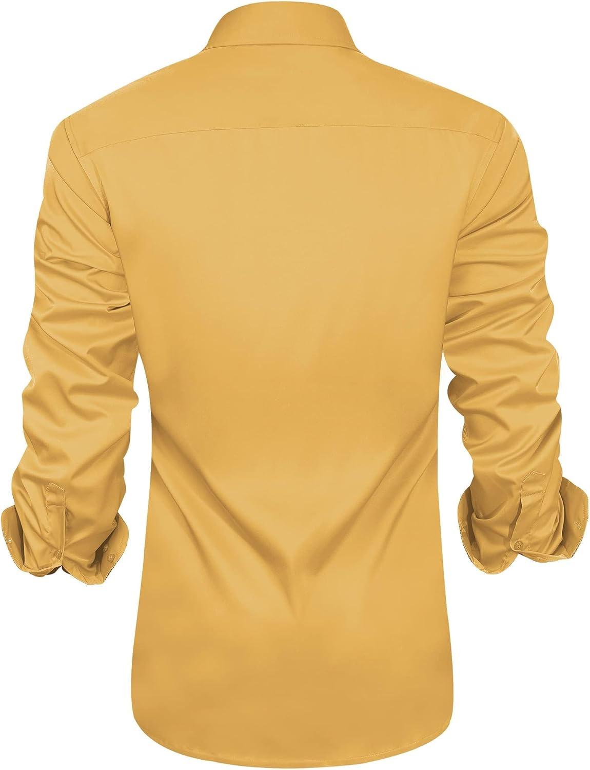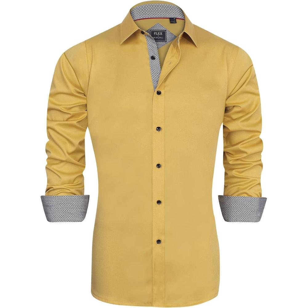 J.VER Men’s Casual Long Sleeve Stretch Dress Shirt Wrinkle-Free Regular Fit Button Down Shirts(Yellow)