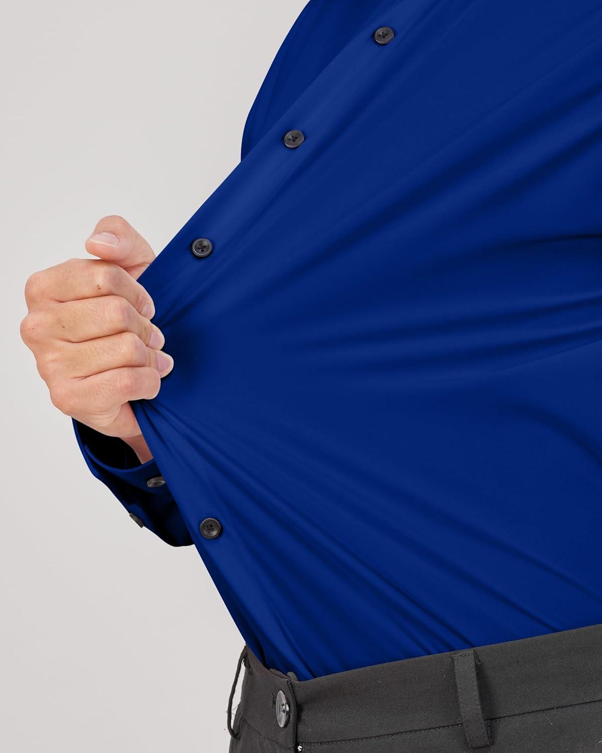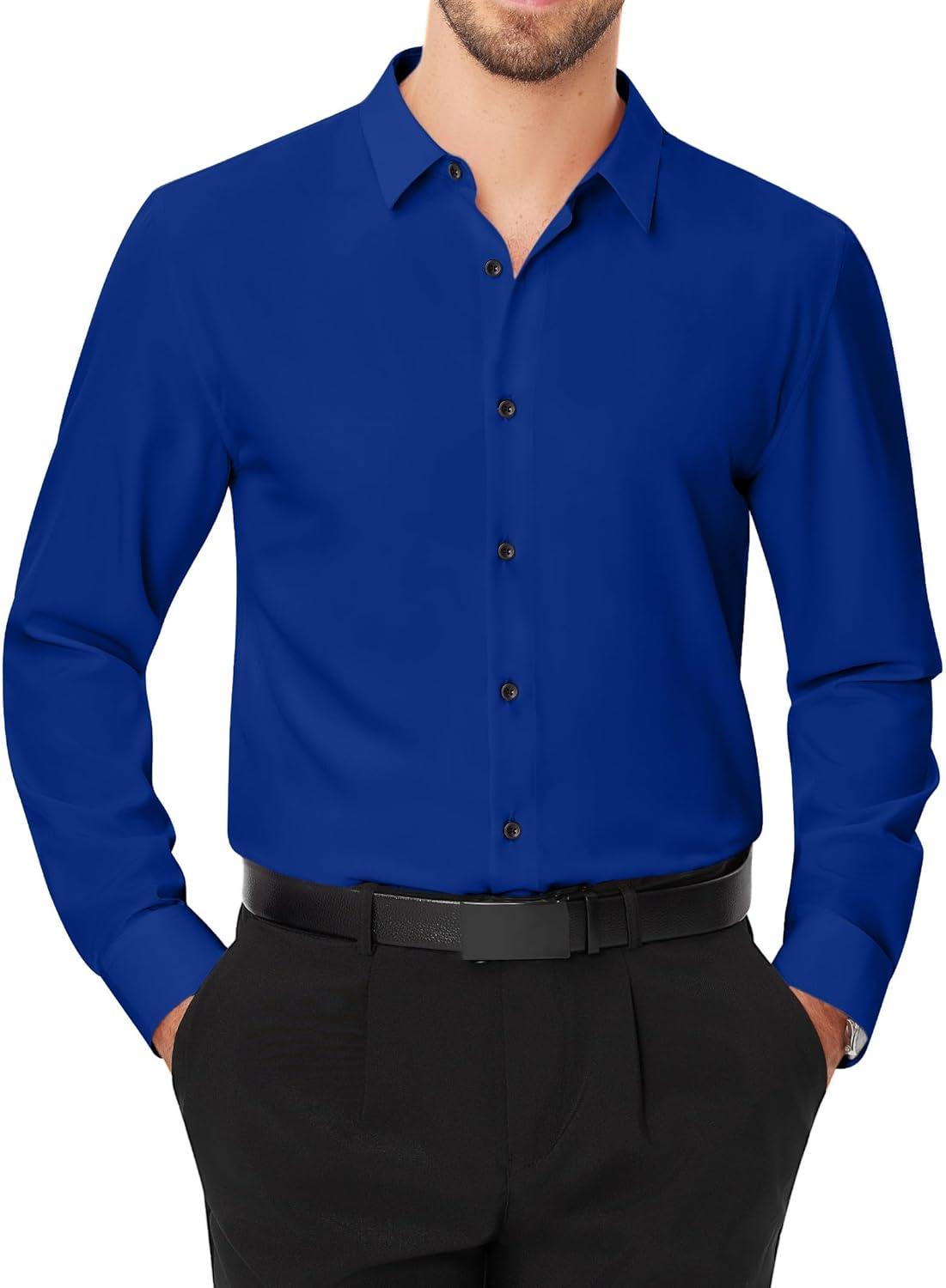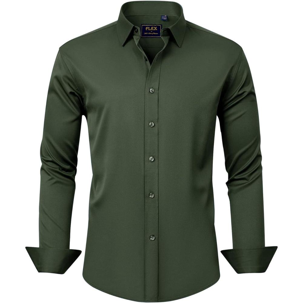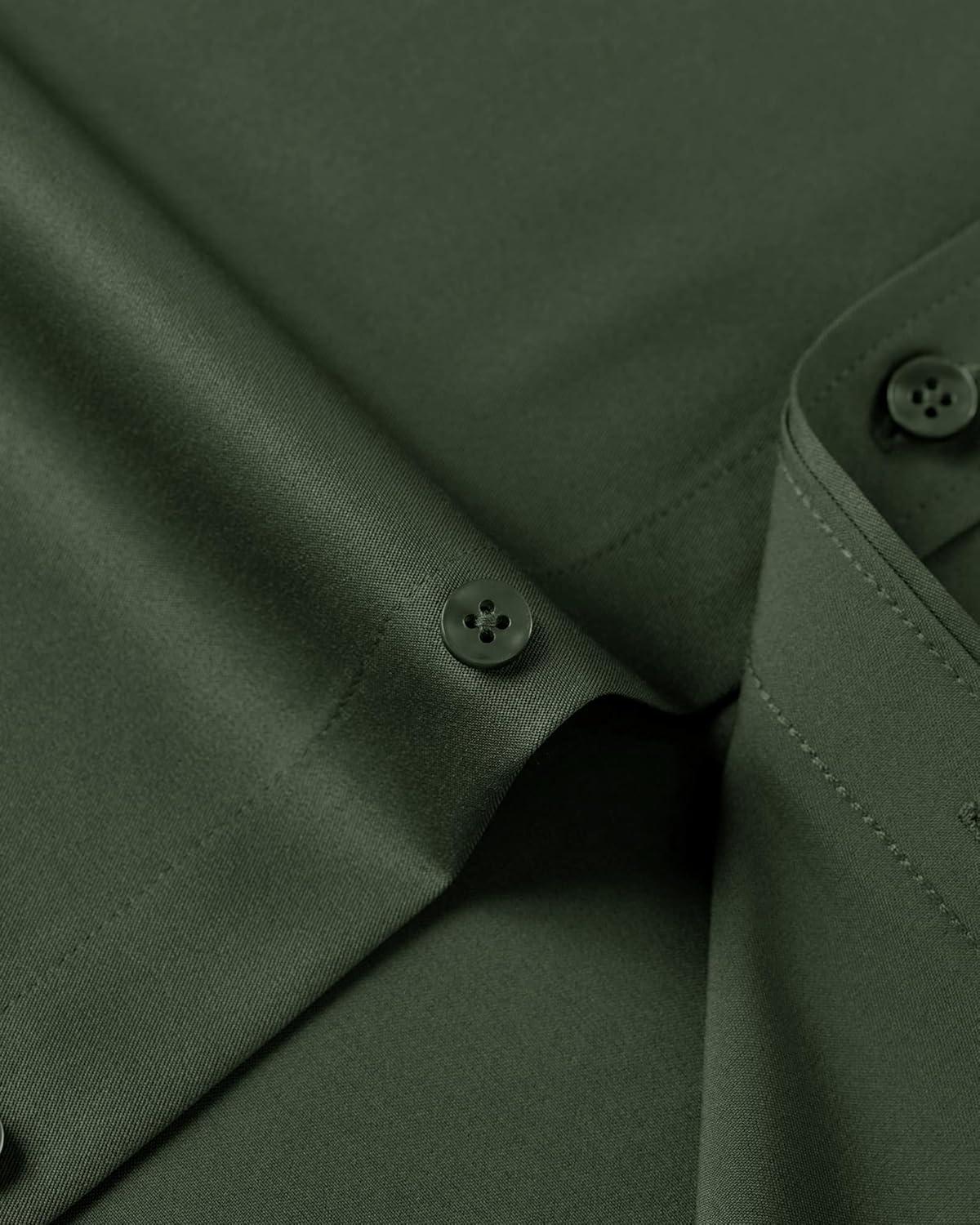 J.VER Men’s Dress Shirts Solid Long Sleeve Stretch Wrinkle-Free Formal Shirt Business Casual Button Down Shirts(Army Green)