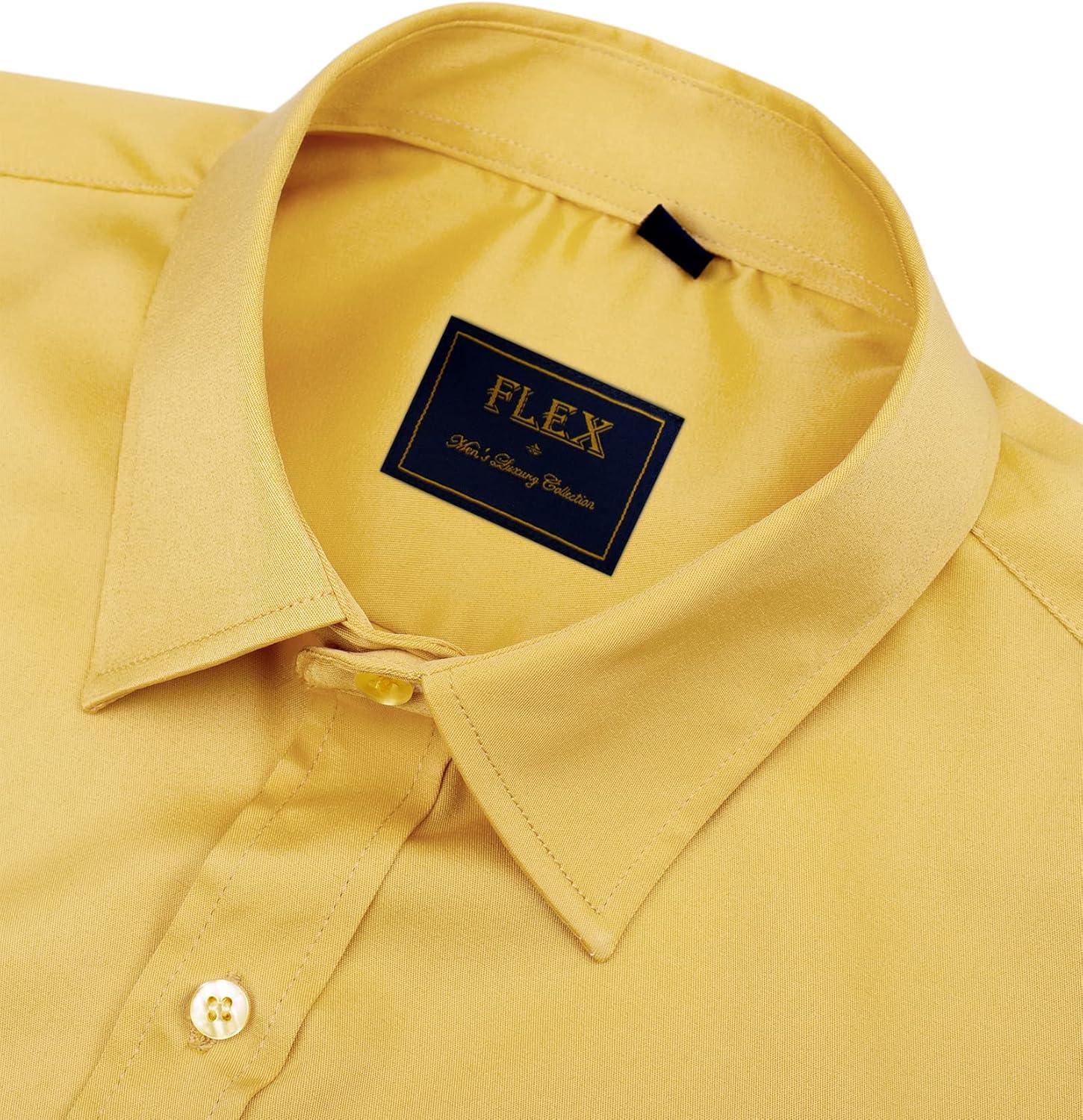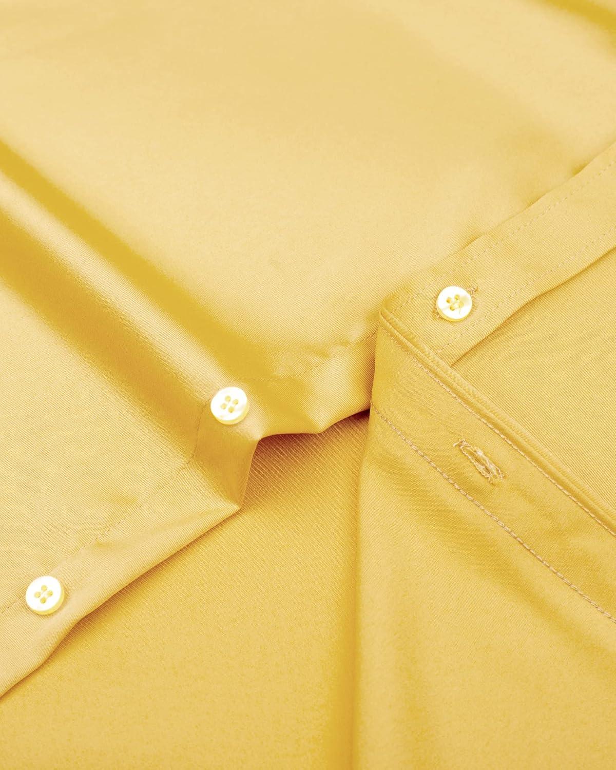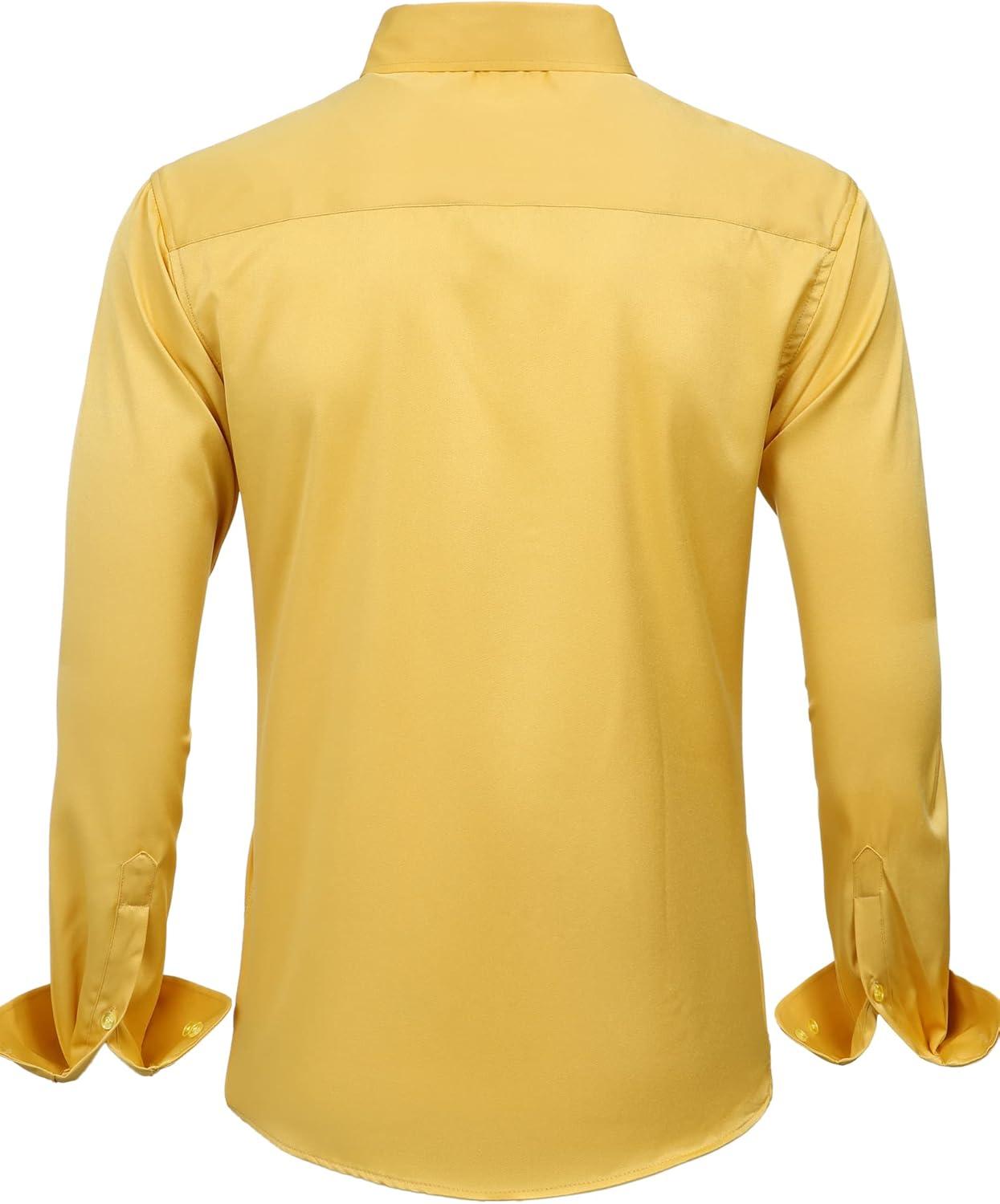 J.VER Men’s Dress Shirts Solid Long Sleeve Stretch Wrinkle-Free Formal Shirt Business Casual Button Down Shirts(Dark Yellow)