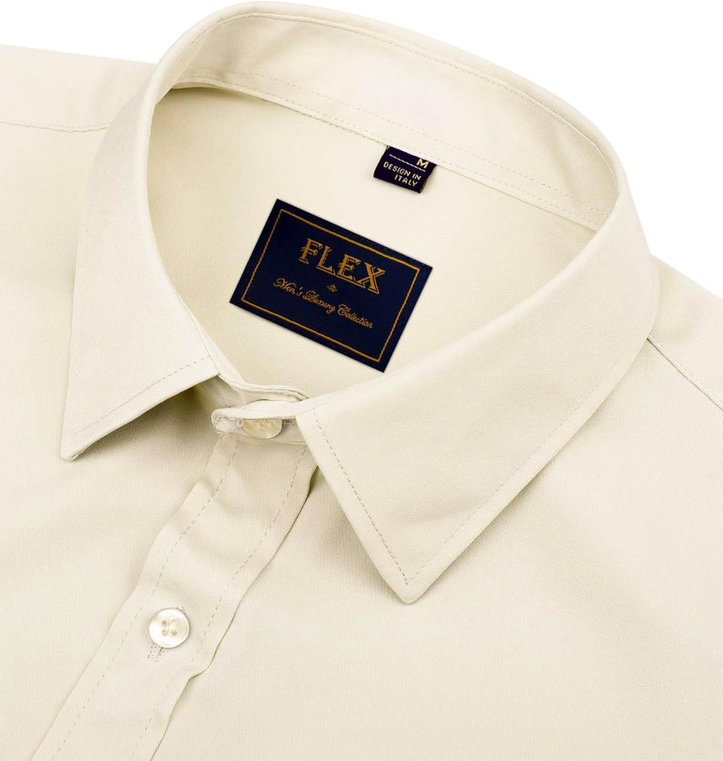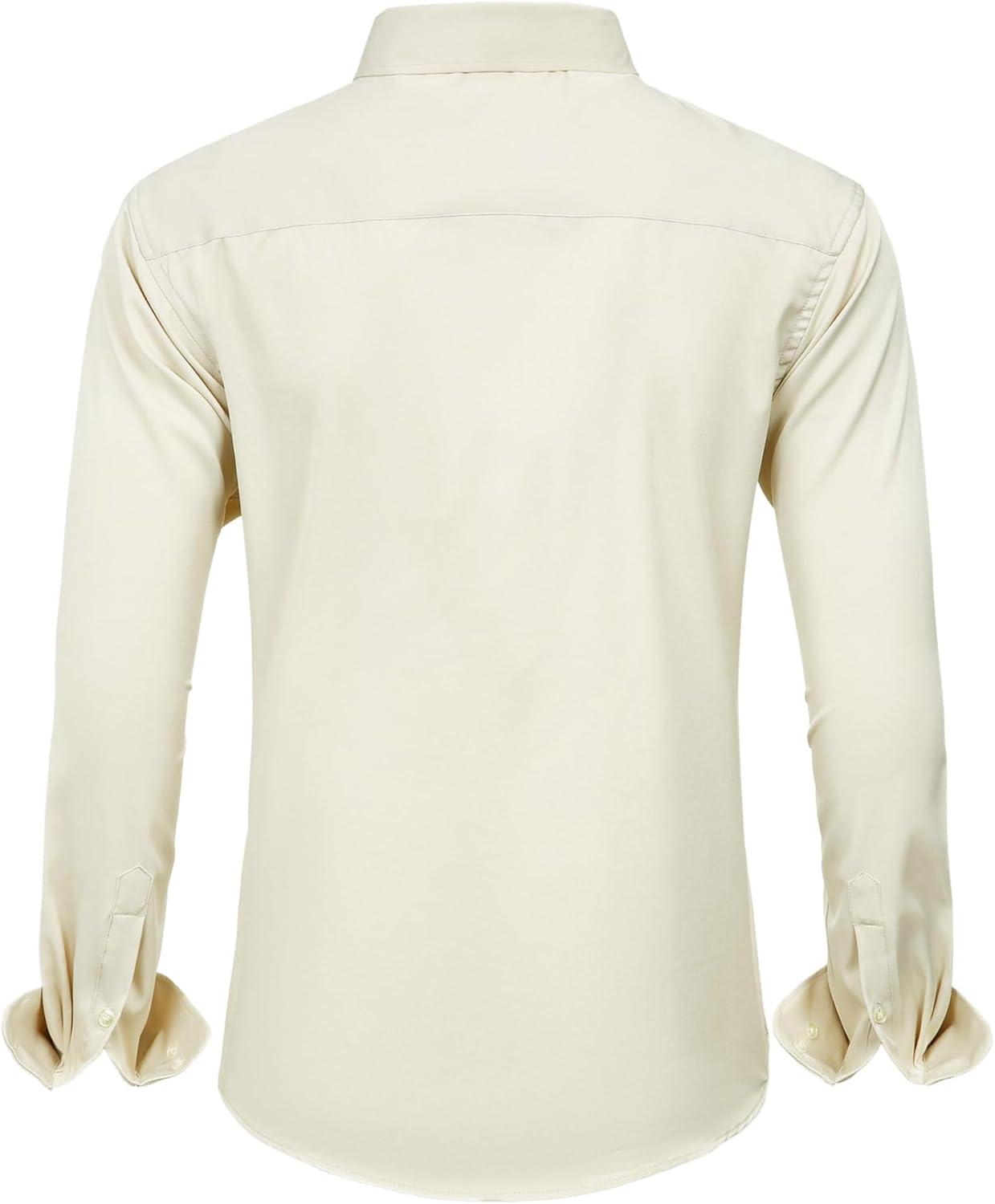 J.VER Men’s Dress Shirts Solid Long Sleeve Stretch Wrinkle-Free Formal Shirt Business Casual Button Down Shirts(Light Creamy Yellow)