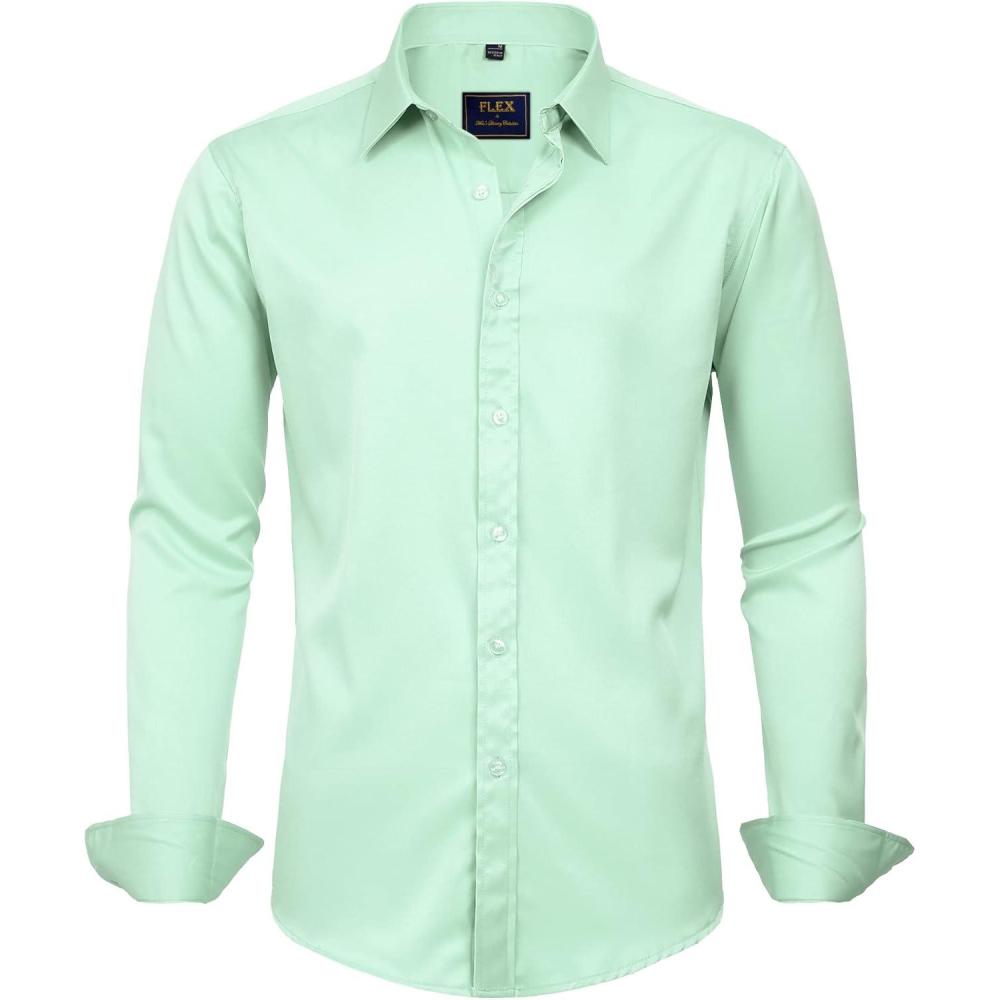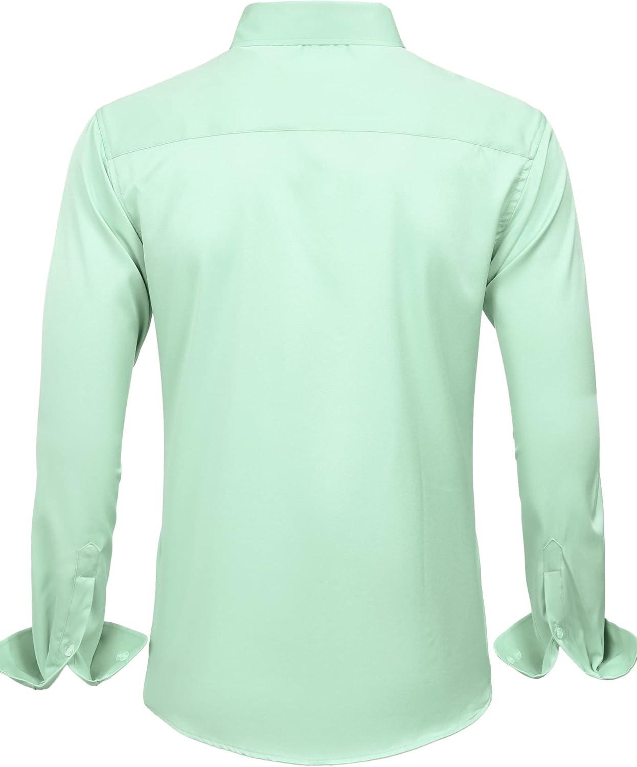 J.VER Men’s Dress Shirts Solid Long Sleeve Stretch Wrinkle-Free Formal Shirt Business Casual Button Down Shirts(Light Green)