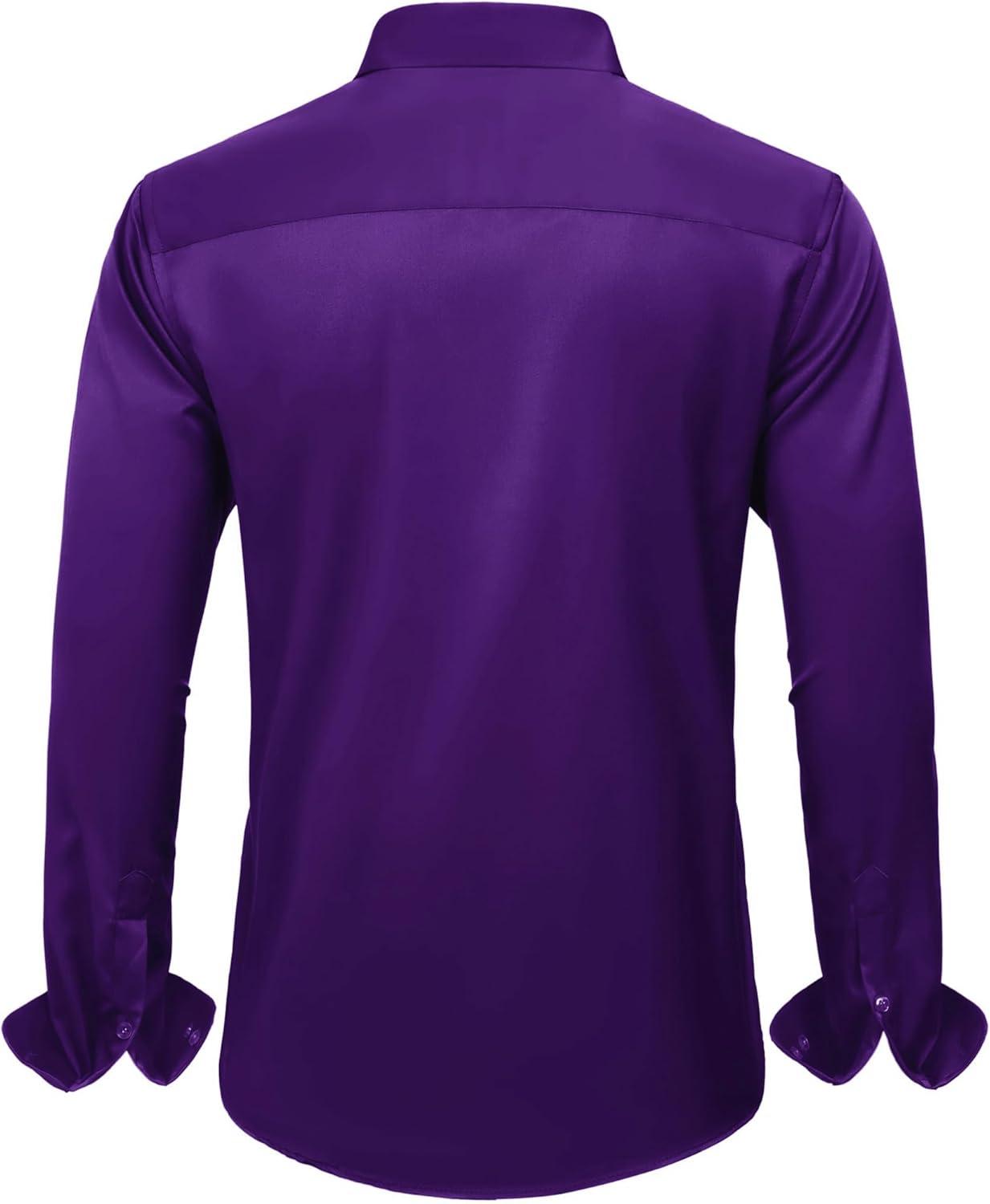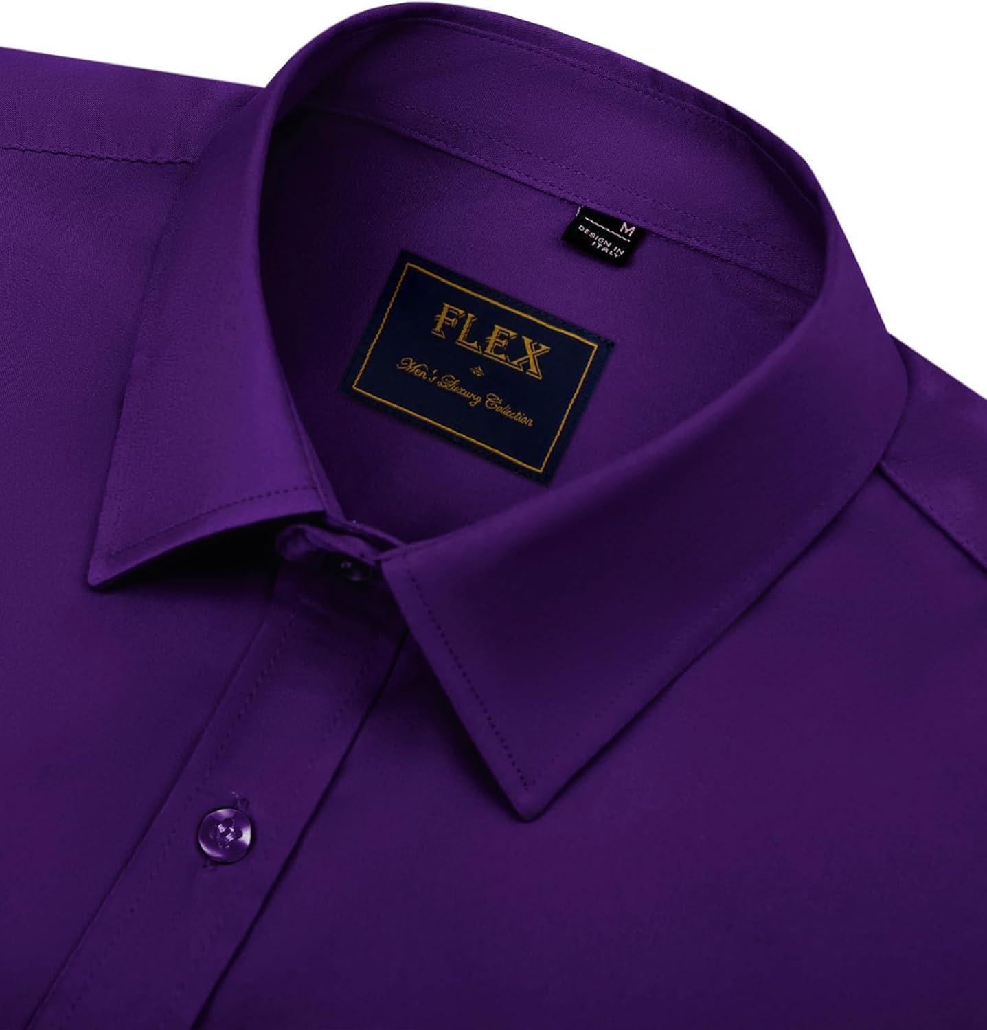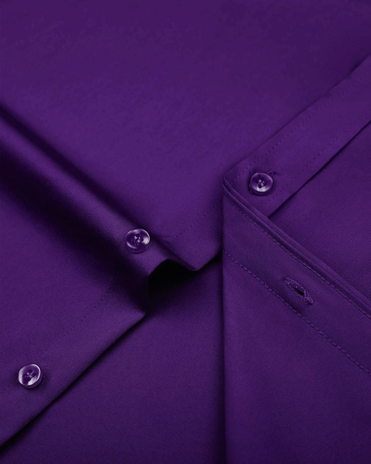 J.VER Men’s Dress Shirts Solid Long Sleeve Stretch Wrinkle-Free Formal Shirt Business Casual Button Down Shirts(Purple)