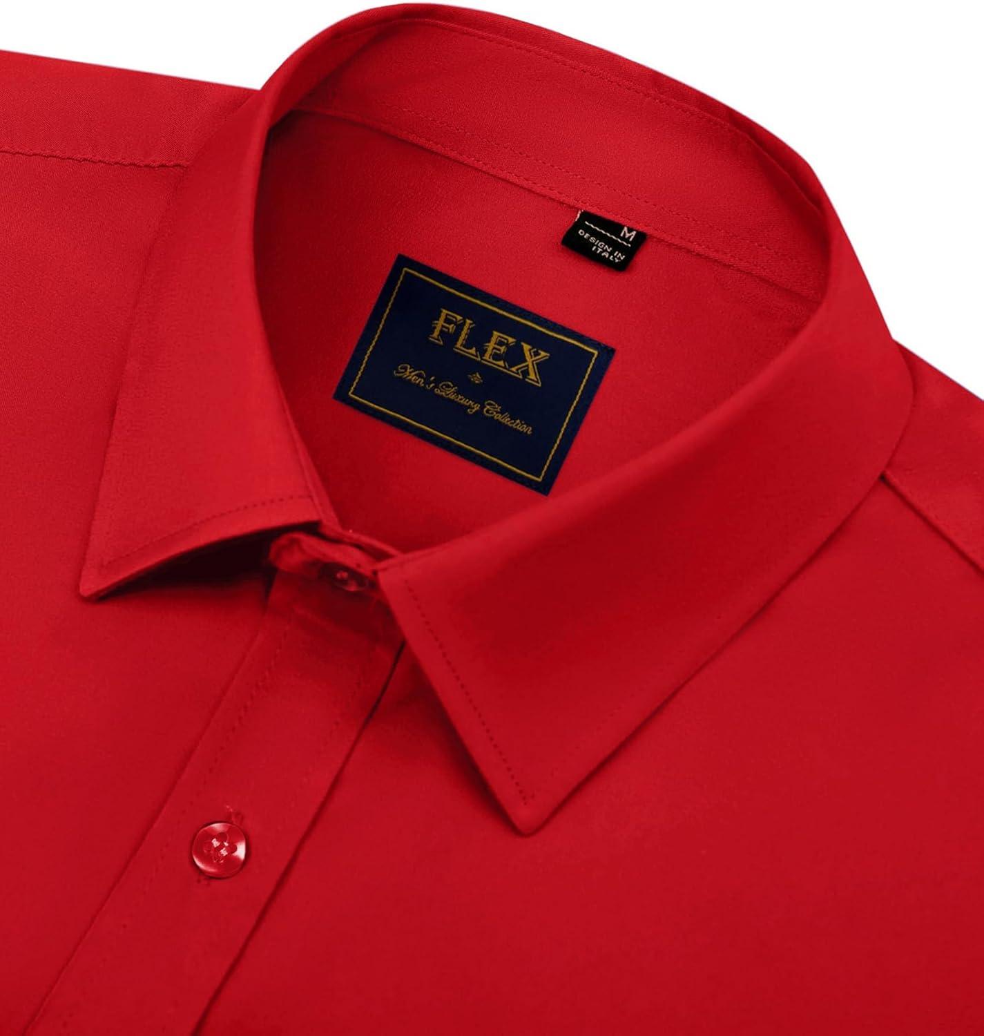 J.VER Men’s Dress Shirts Solid Long Sleeve Stretch Wrinkle-Free Formal Shirt Business Casual Button Down Shirts(Red)