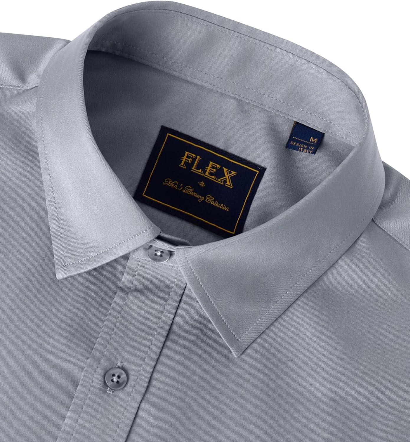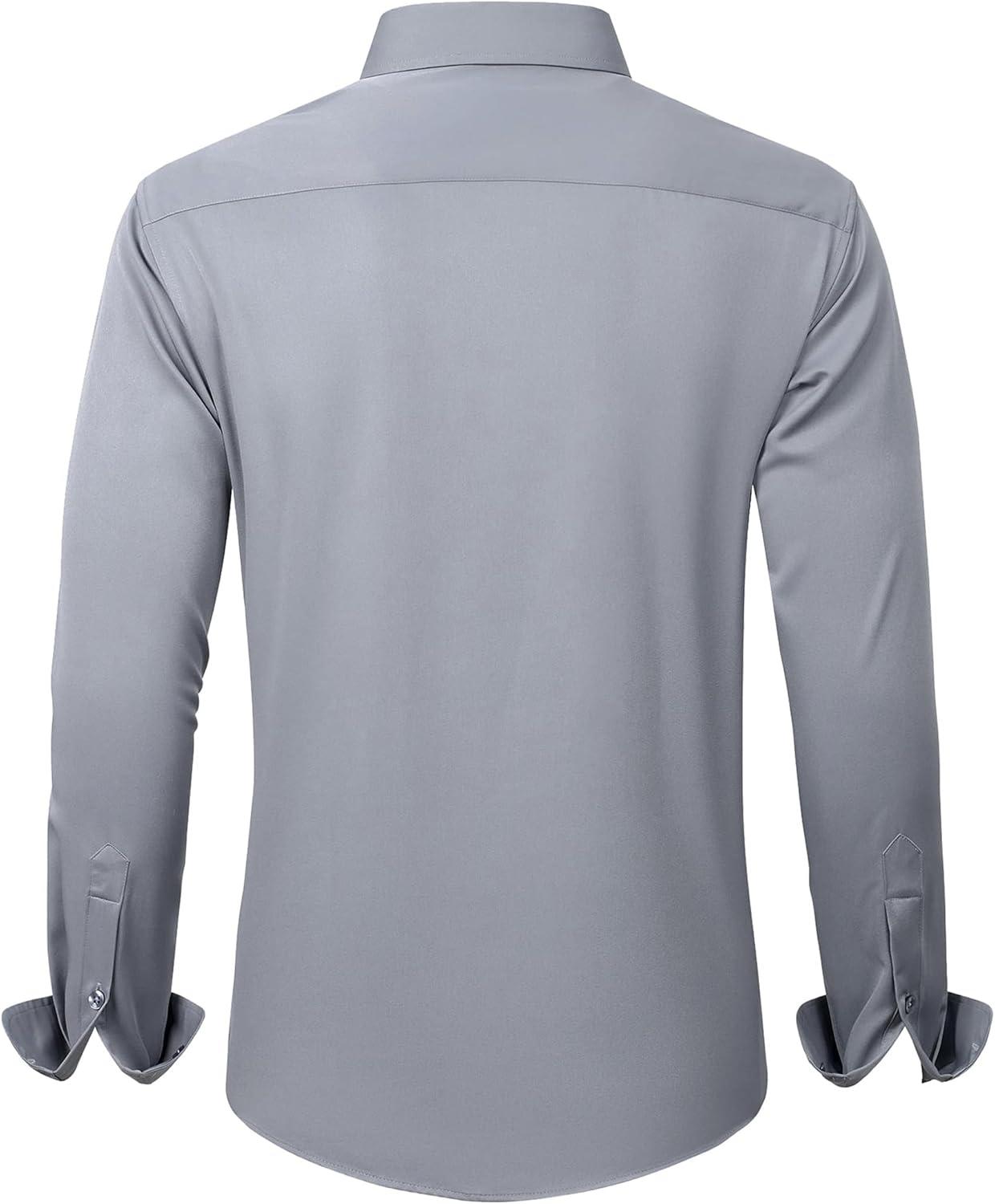 J.VER Men’s Dress Shirts Solid Long Sleeve Stretch Wrinkle-Free Formal Shirt Business Casual Button Down Shirts(Silver Grey)