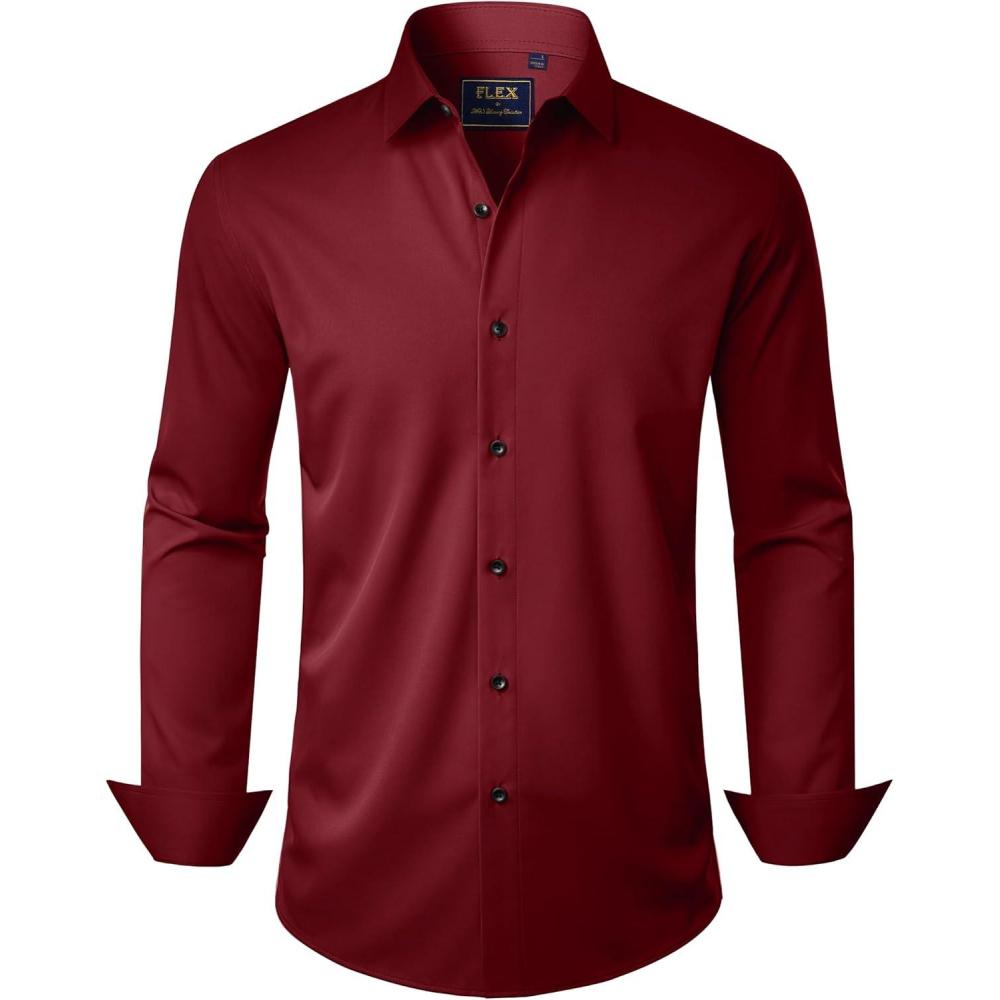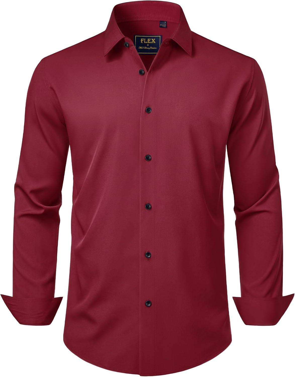 J.VER Men’s Dress Shirts Stretch Long Sleeve Formal Shirt Solid Business Casual Button Down Shirts for Wedding Prom(Burgundy)