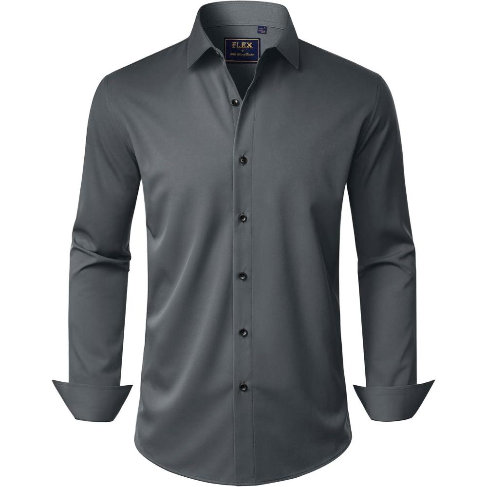 J.VER Men’s Dress Shirts Stretch Long Sleeve Formal Shirt Solid Business Casual Button Down Shirts for Wedding Prom(Grey)