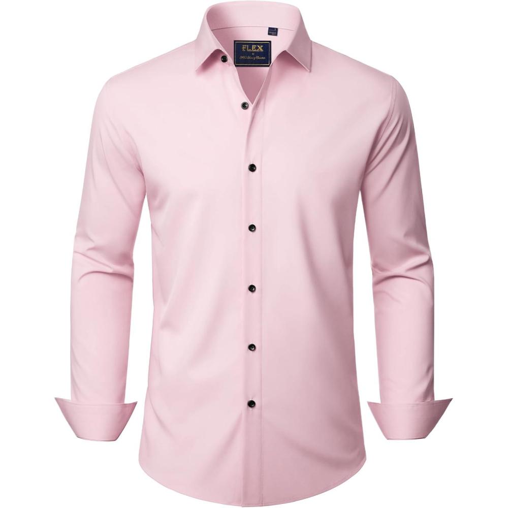 J.VER Men’s Dress Shirts Stretch Long Sleeve Formal Shirt Solid Business Casual Button Down Shirts for Wedding Prom(Pink)