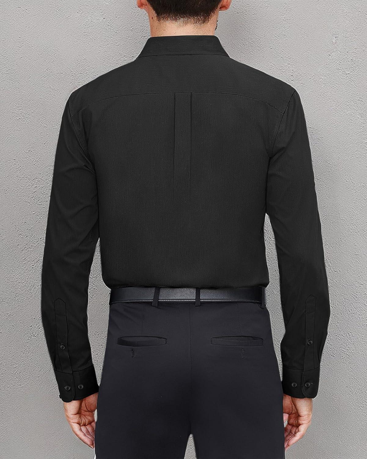J.VER Men’s Dress Shirts Stretch Stain Shield Long Sleeve Solid Formal Shirt Business Casual Button Down Shirts(Black)
