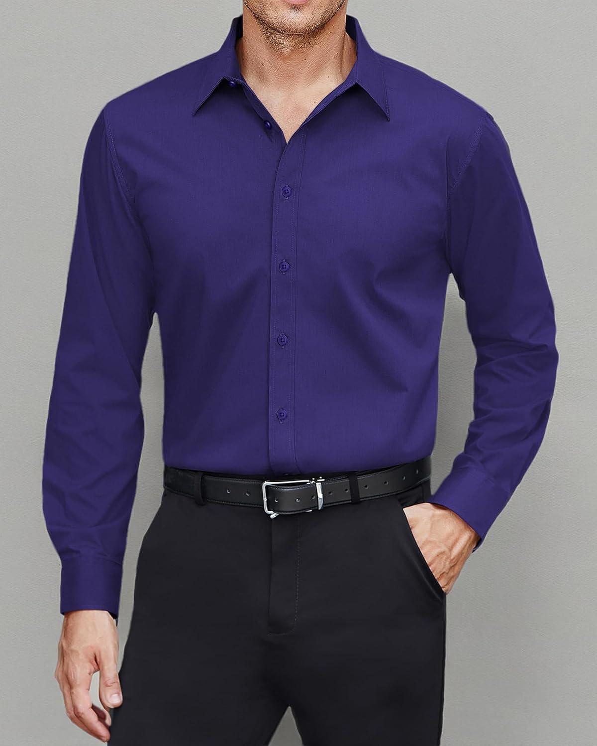 J.VER Men’s Dress Shirts Stretch Stain Shield Long Sleeve Solid Formal Shirt Business Casual Button Down Shirts(Dark Purple)