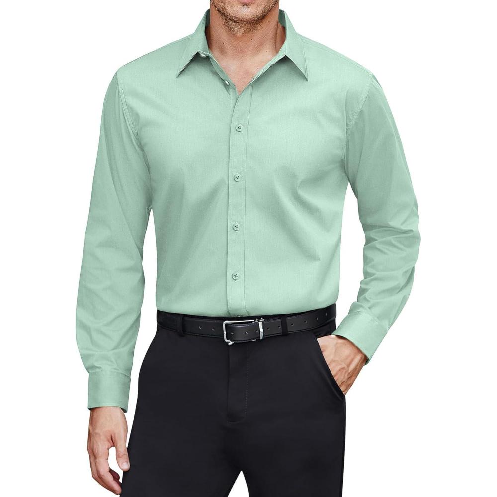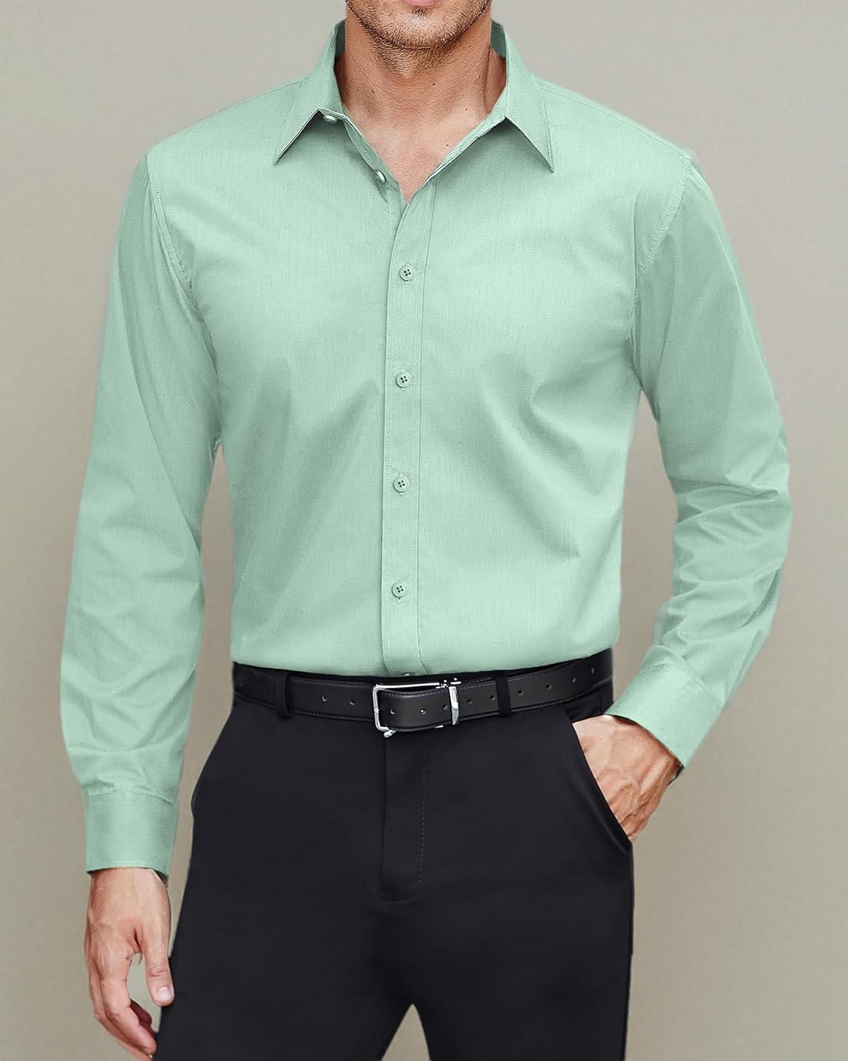 J.VER Men’s Dress Shirts Stretch Stain Shield Long Sleeve Solid Formal Shirt Business Casual Button Down Shirts(Light Green)