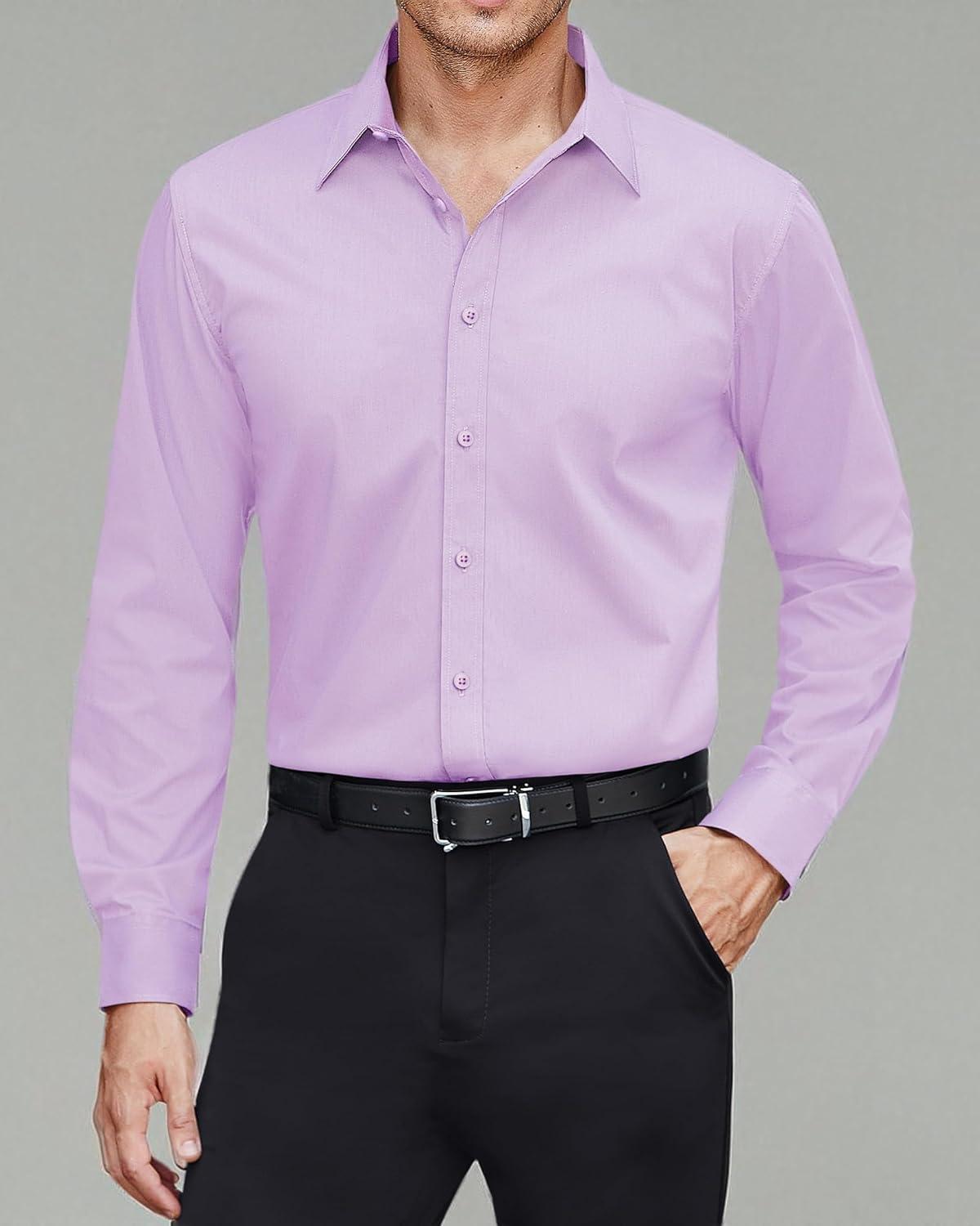 J.VER Men’s Dress Shirts Stretch Stain Shield Long Sleeve Solid Formal Shirt Business Casual Button Down Shirts(Light Purple)