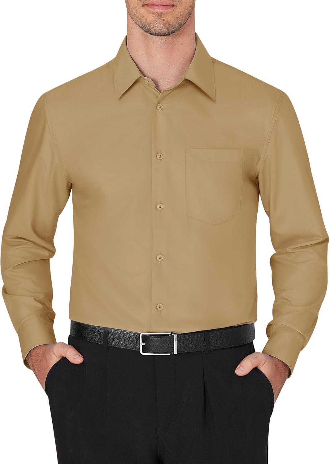J.VER Men’s Dress Shirts Wrinkle Free Long Sleeve Formal Shirt Solid Business Casual Button Down Shirts for Wedding Prom(Khaki Brown)
