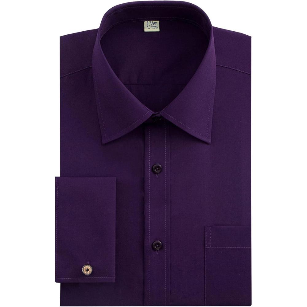J.VER Men’s French Cuff Dress Shirts Regular Fit Long Sleeve Spread Collar Metal Cufflink(Purple)