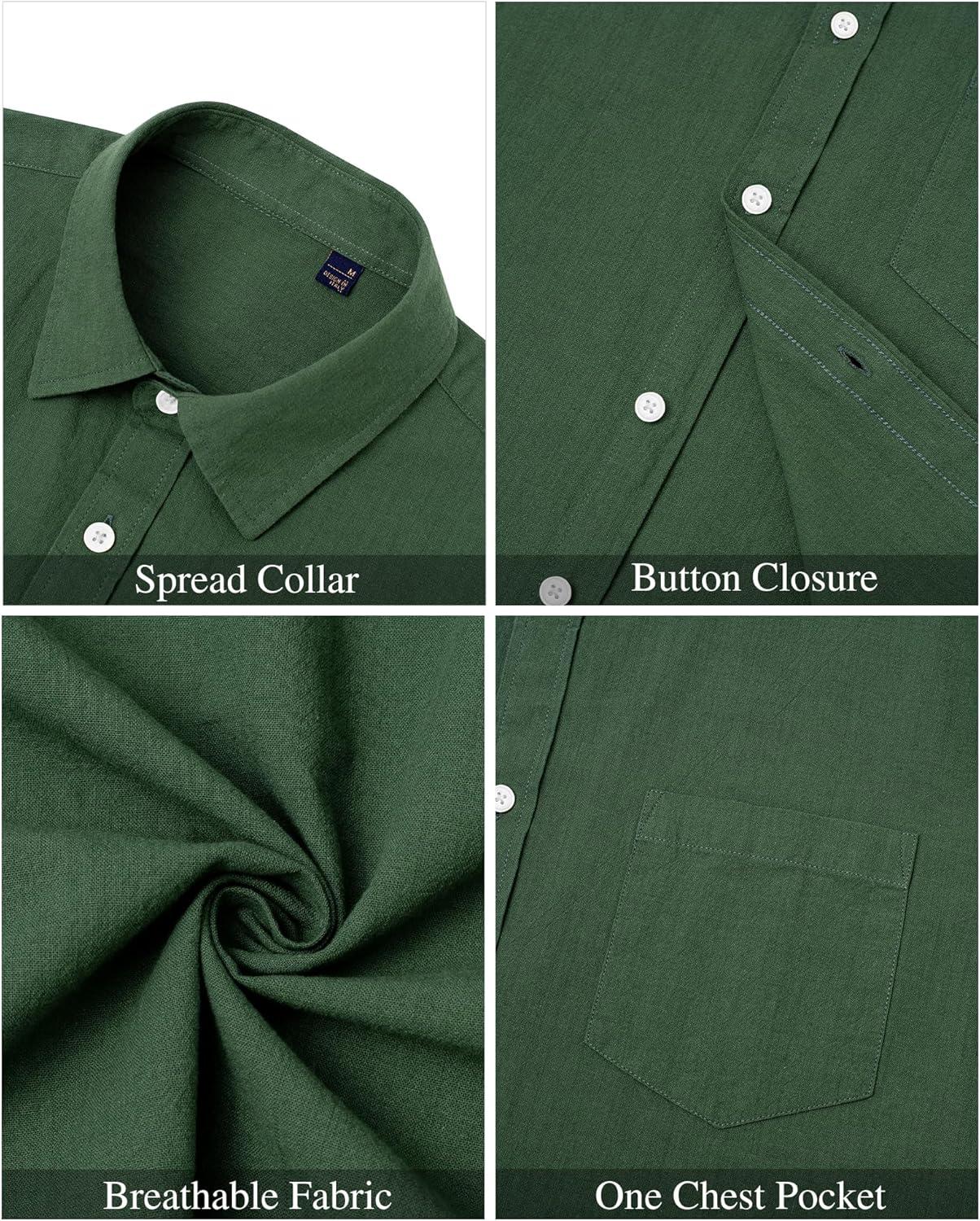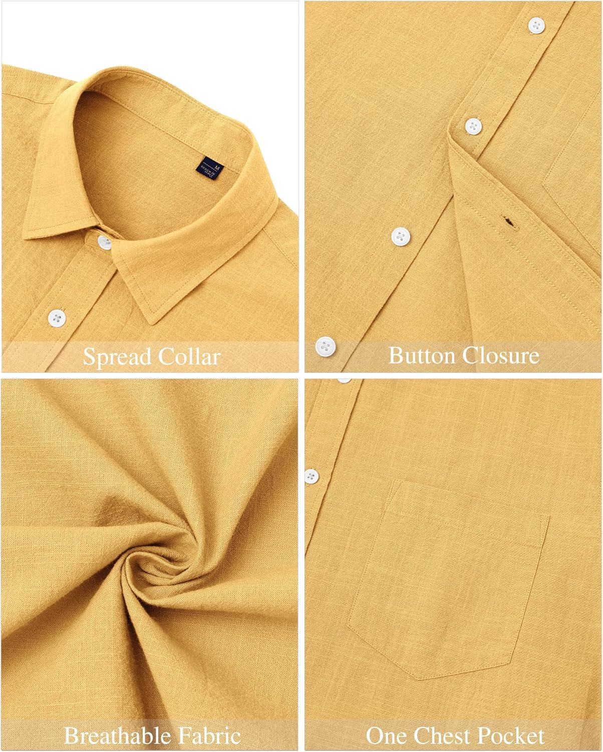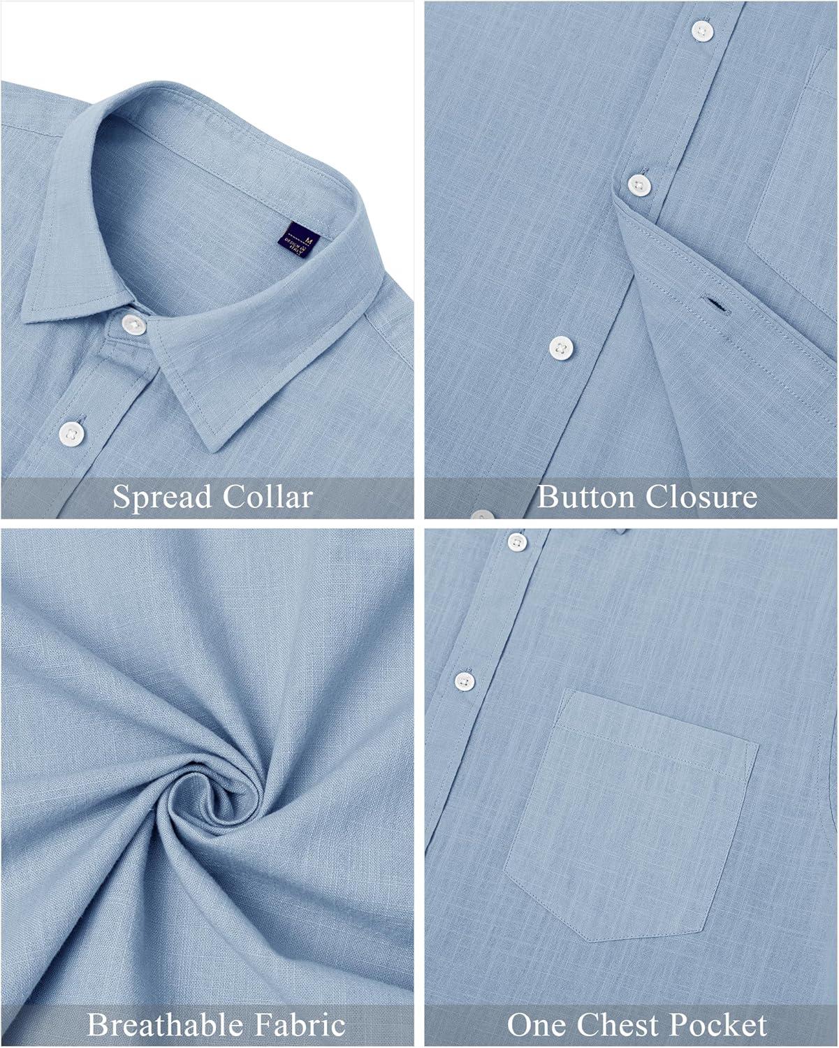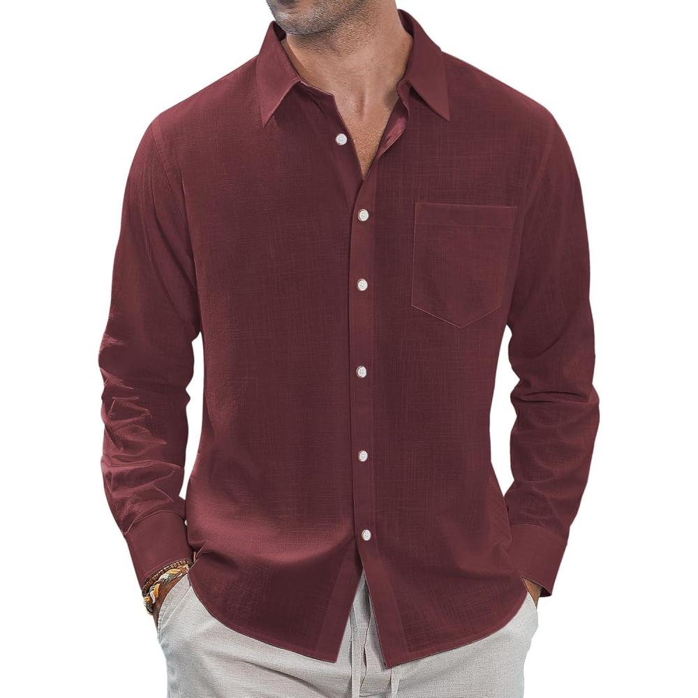 J.VER Men’s Linen Shirts Casual Button Down Long Sleeve Shirt Solid Spread Collar Summer Beach Shirts with Pocket(Burgundy)