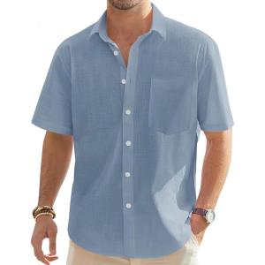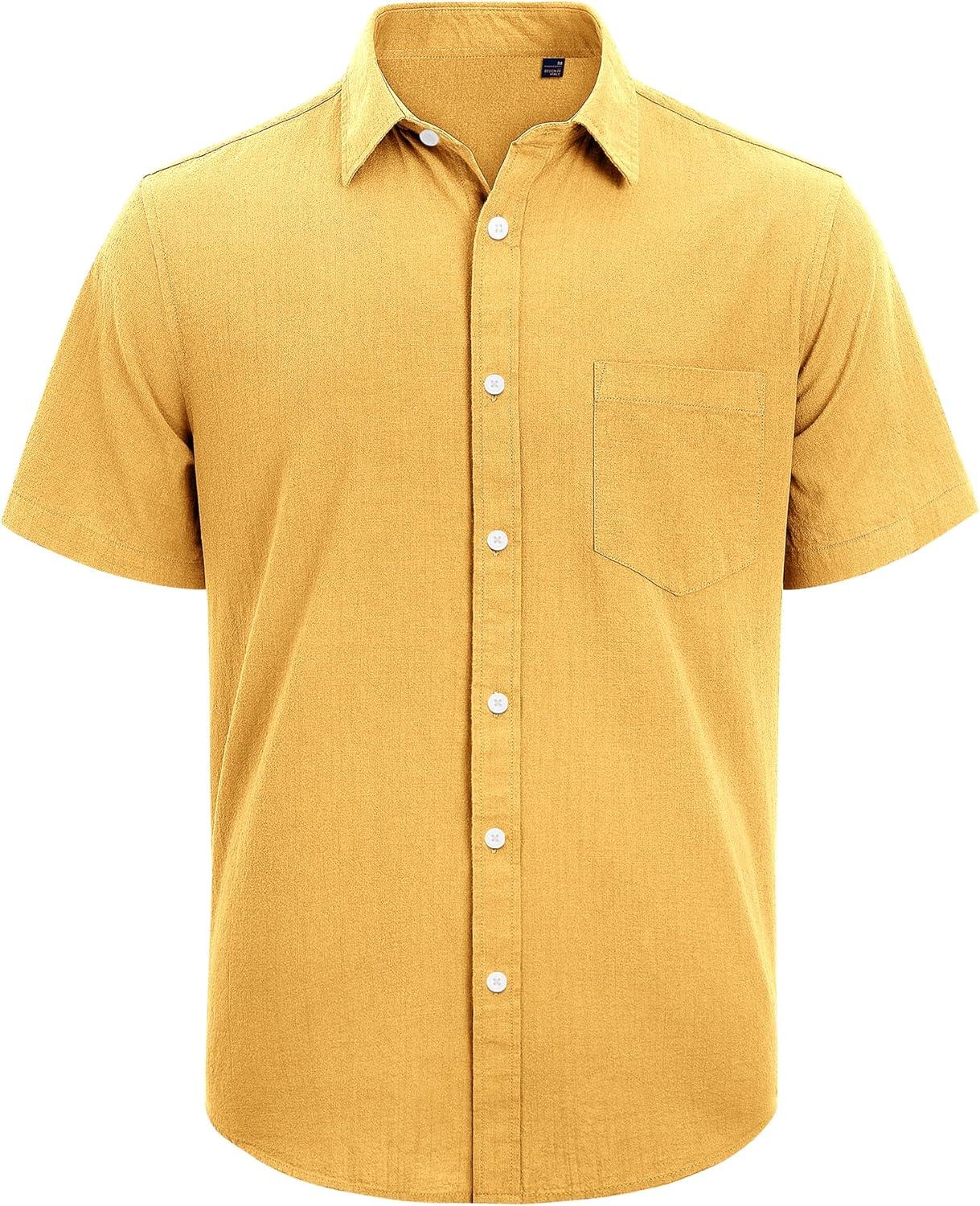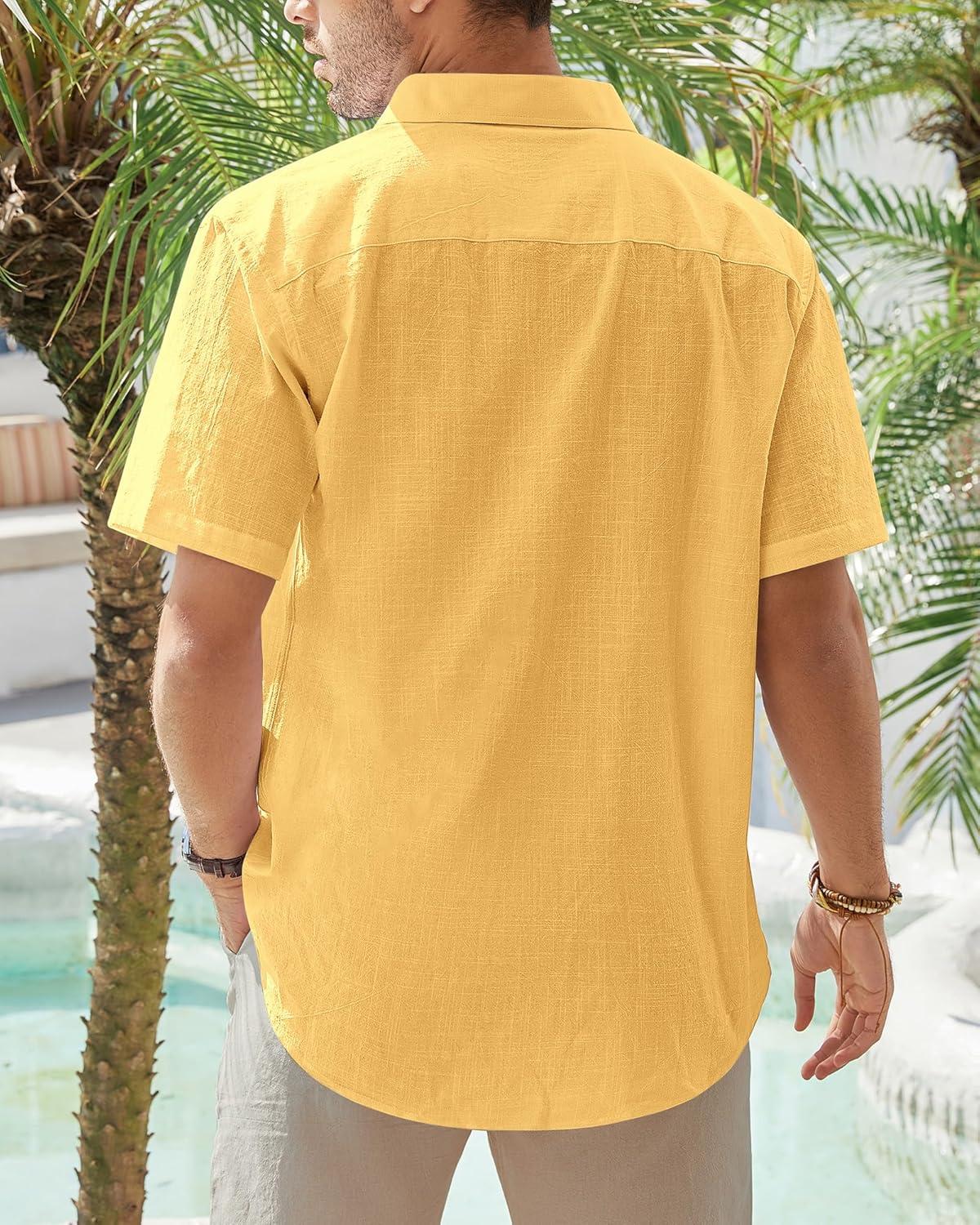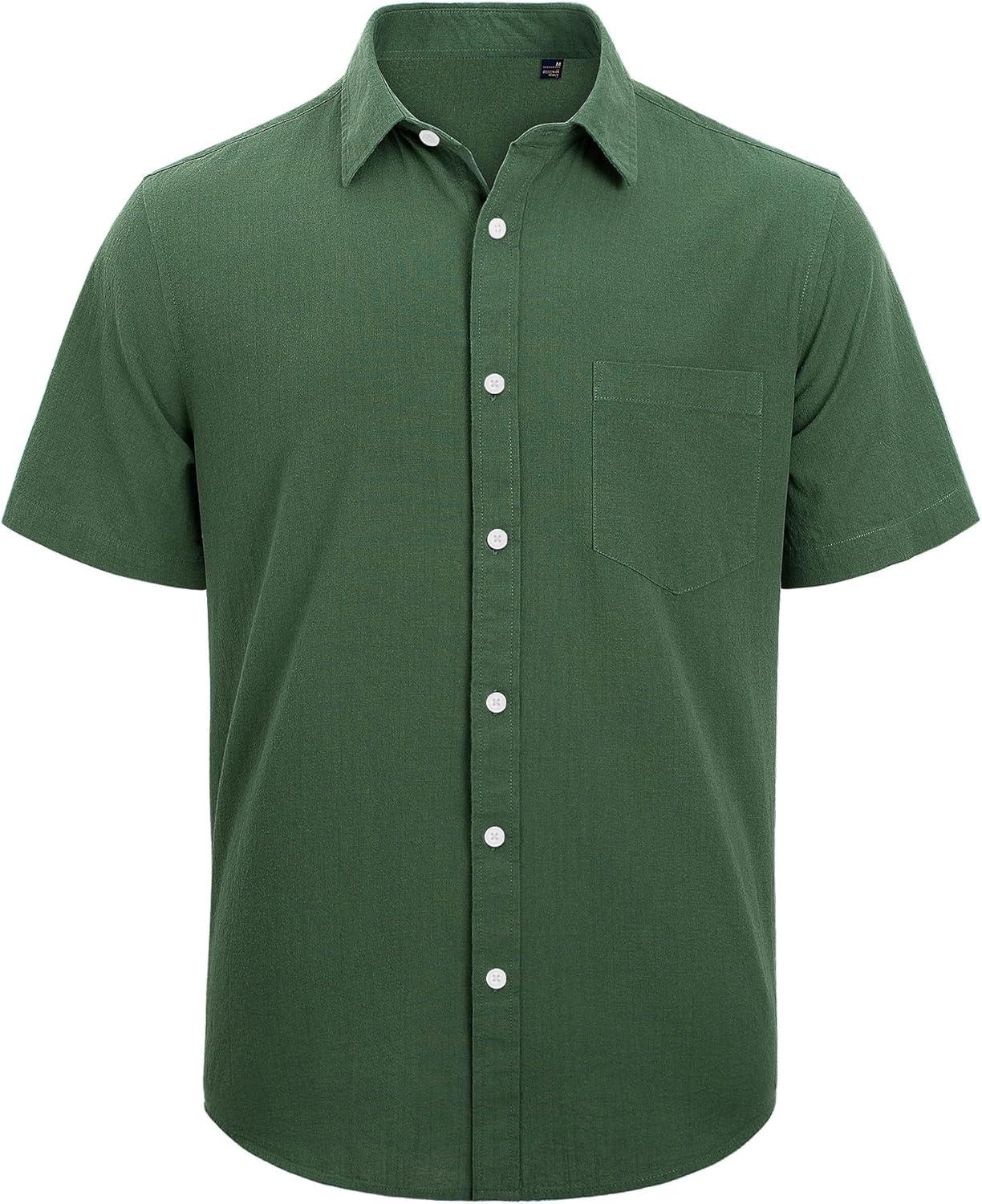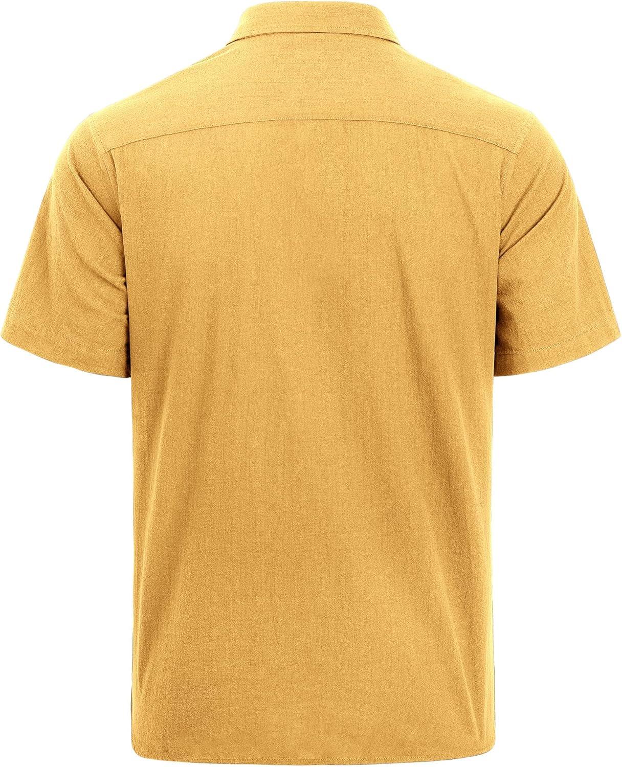 J.VER Men’s Linen Shirts Casual Button Down Long Sleeve Shirt Solid Spread Collar Summer Beach Shirts with Pocket(Burgundy)