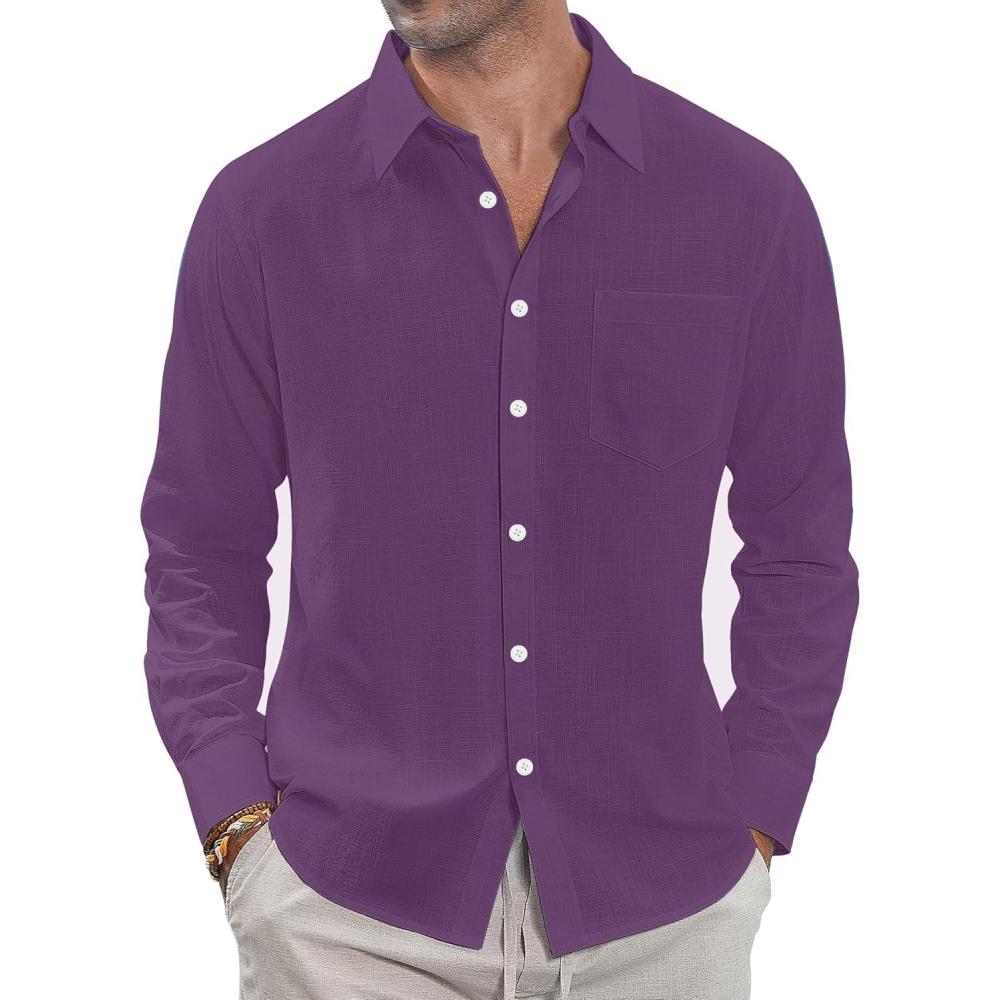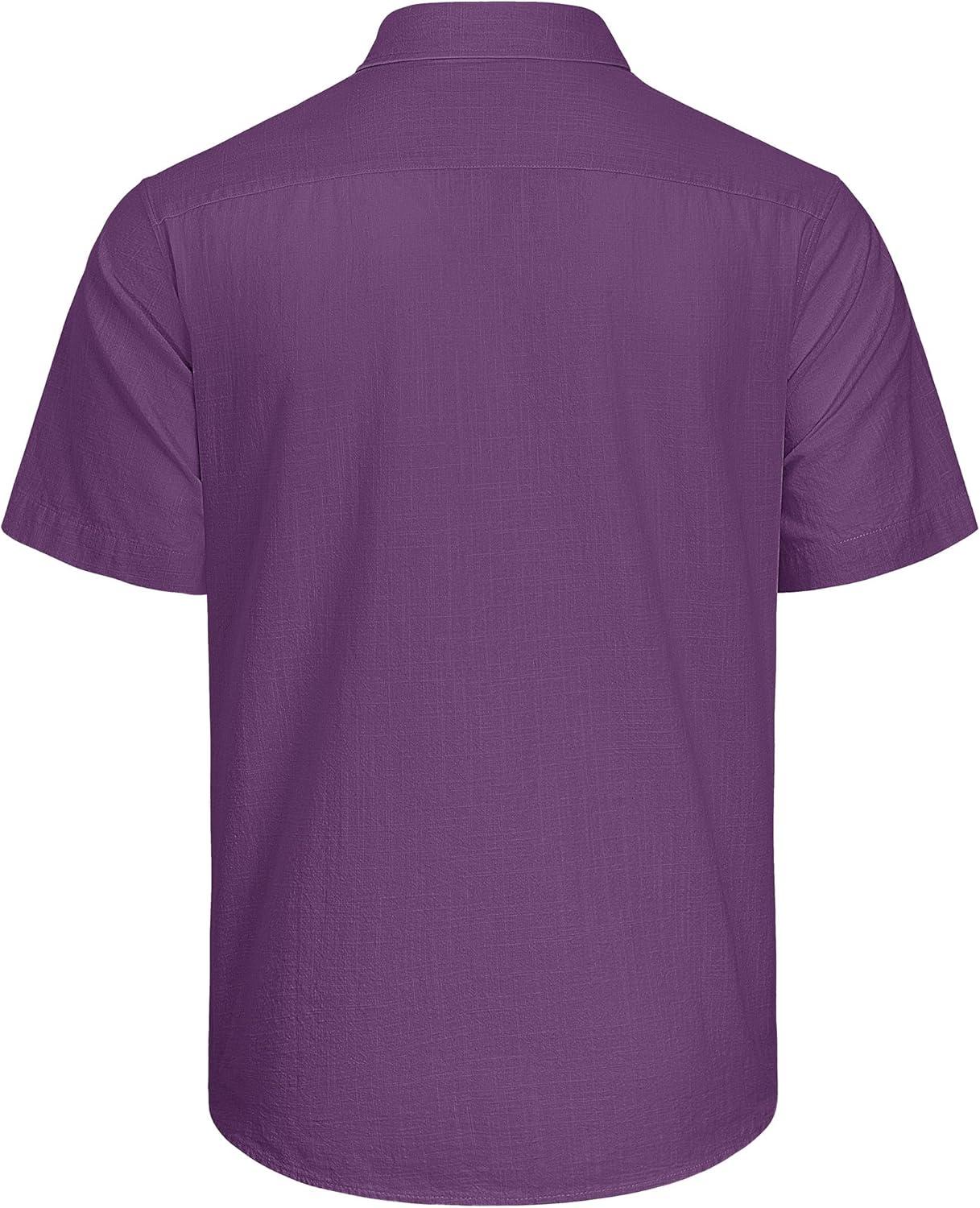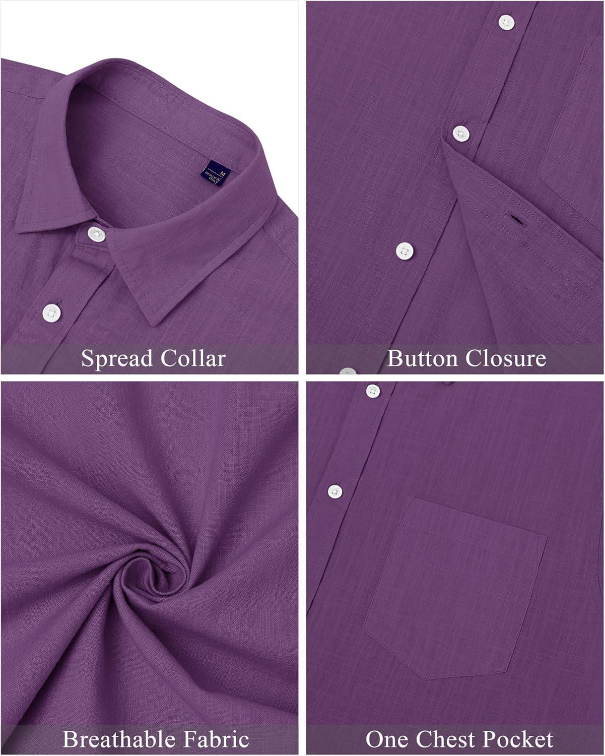 J.VER Men’s Linen Shirts Casual Button Down Long Sleeve Shirt Solid Spread Collar Summer Beach Shirts with Pocket(Dark Purple)