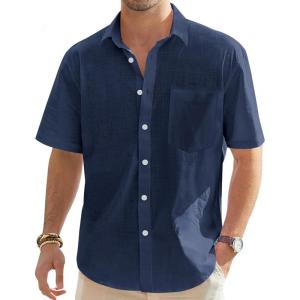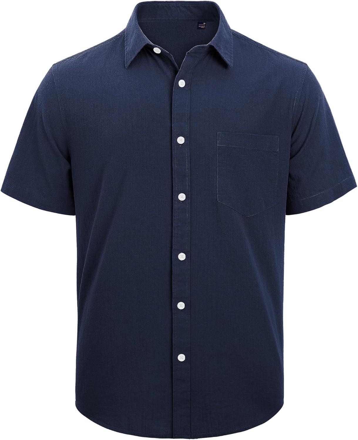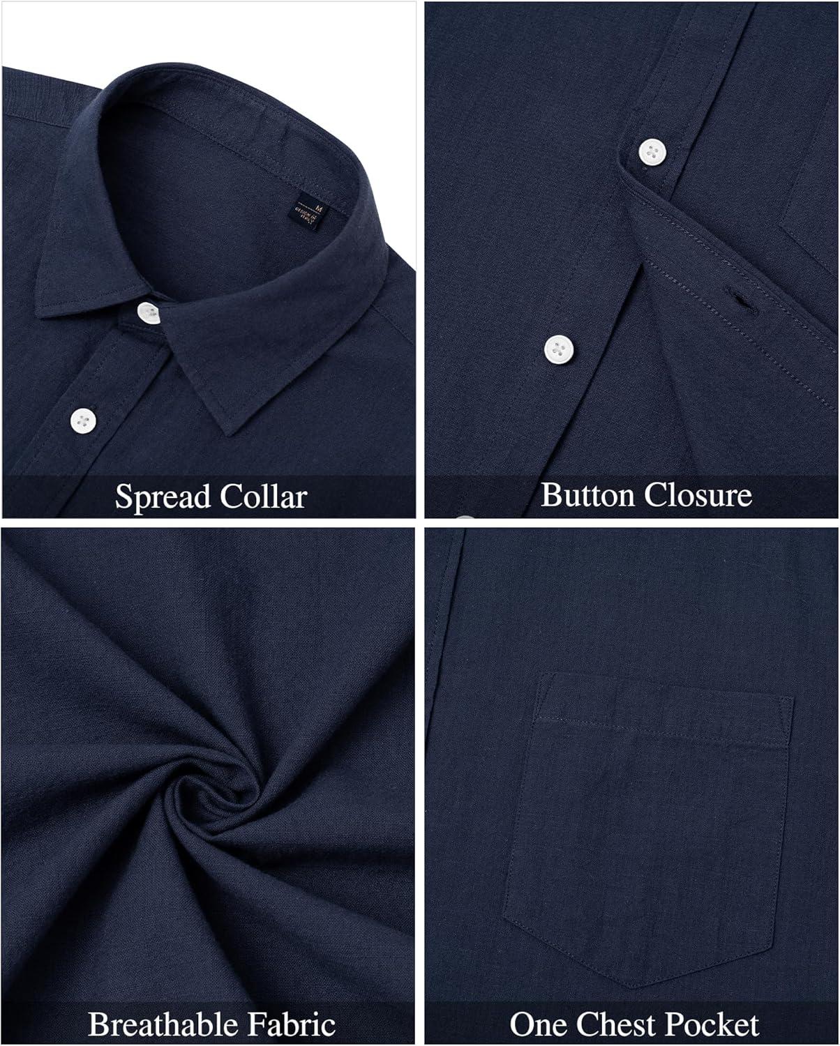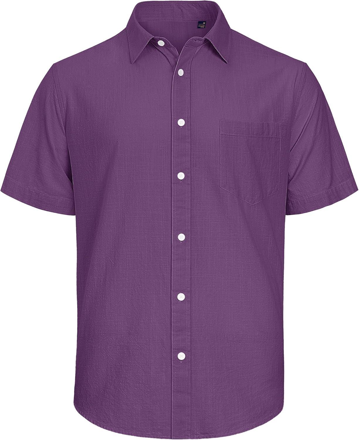 J.VER Men’s Linen Shirts Casual Button Down Long Sleeve Shirt Solid Spread Collar Summer Beach Shirts with Pocket(Dark Purple)