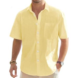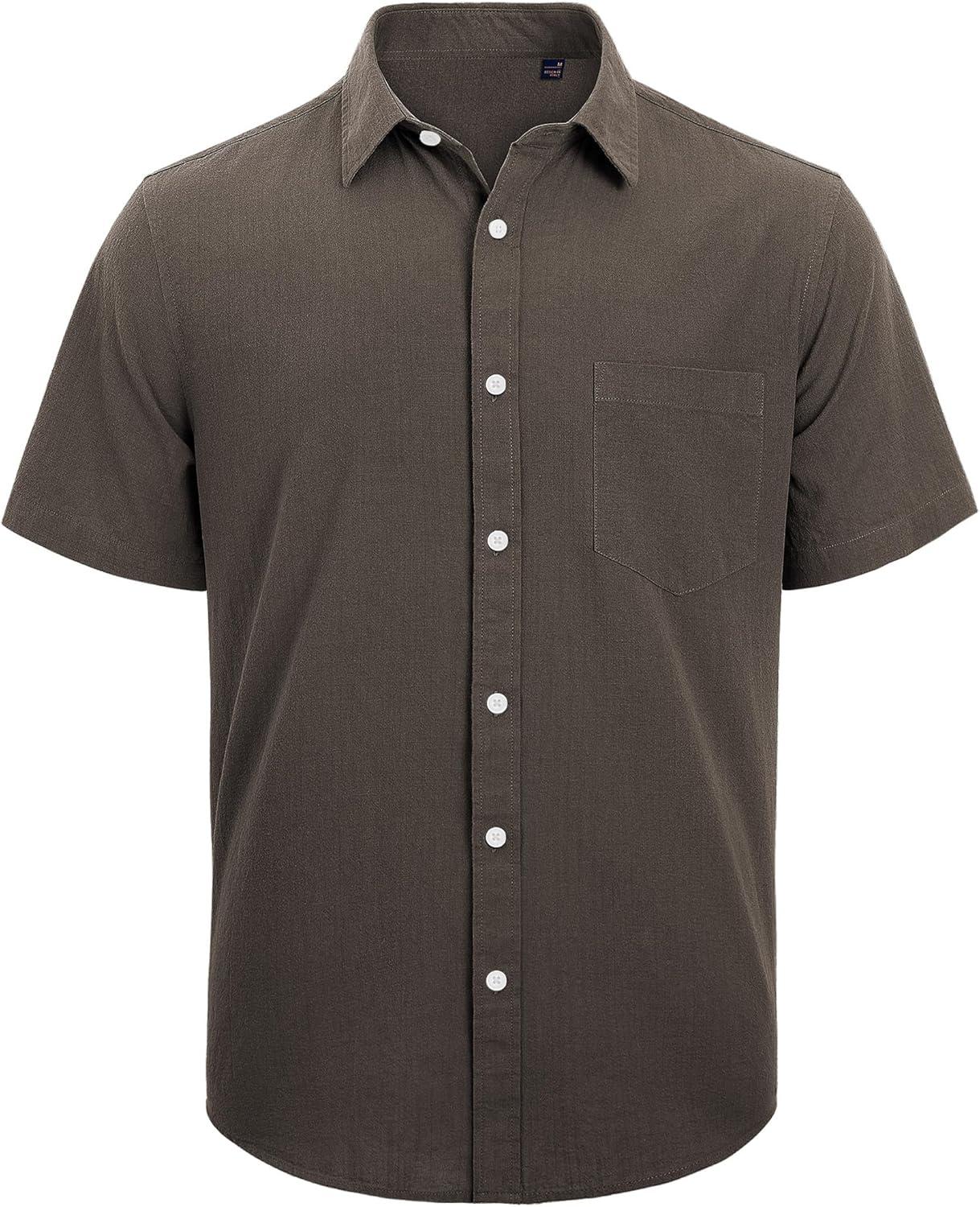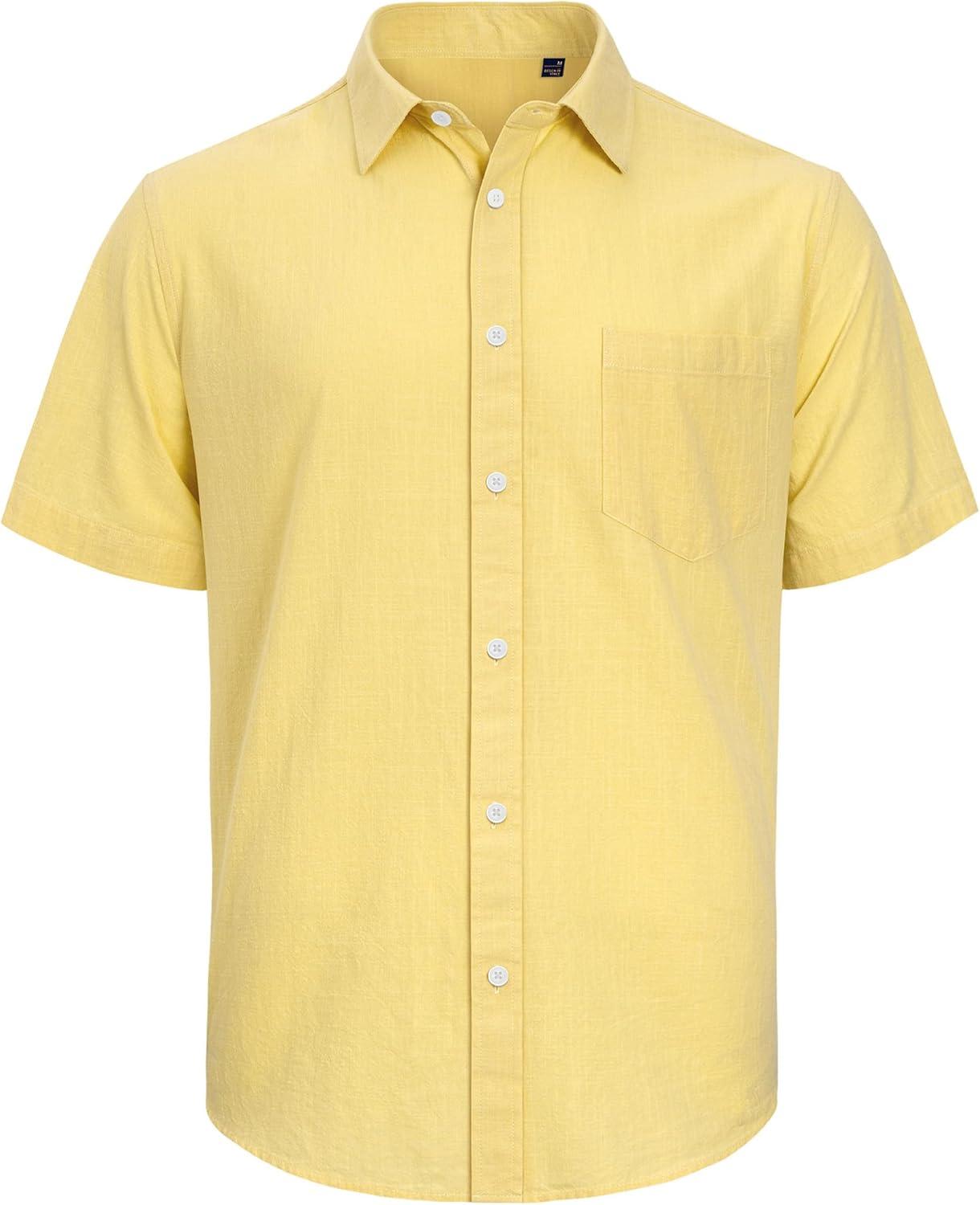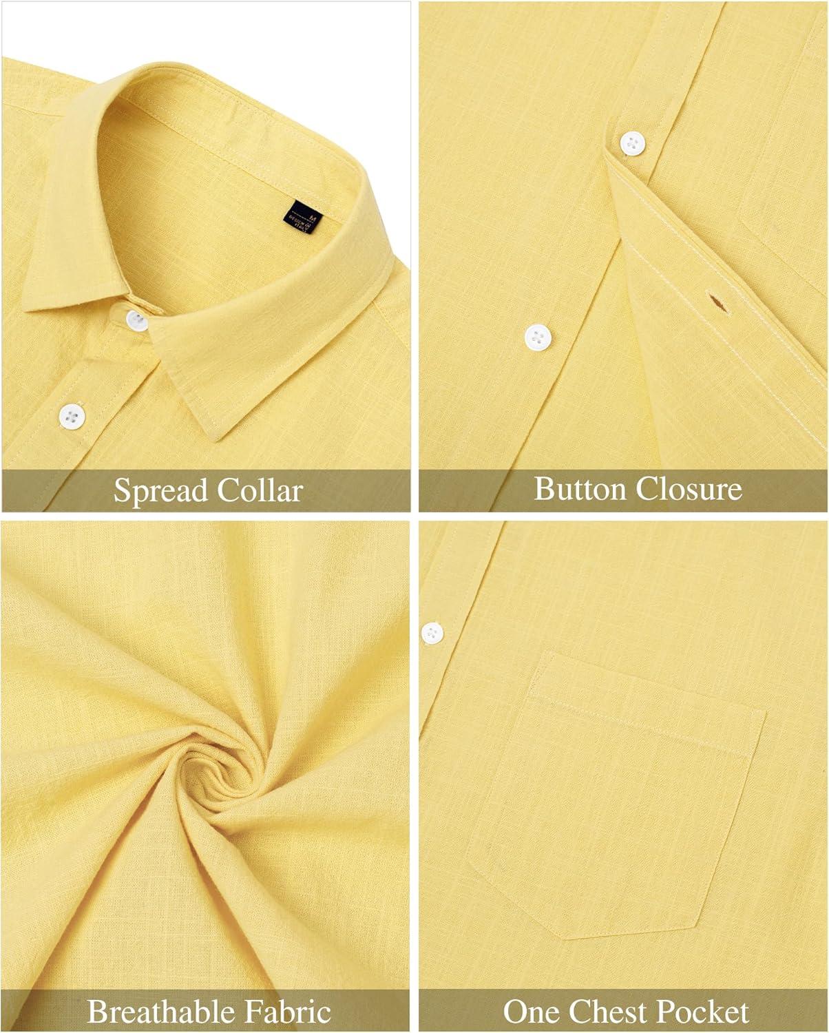 J.VER Men’s Linen Shirts Casual Button Down Long Sleeve Shirt Solid Spread Collar Summer Beach Shirts with Pocket(Denim Blue)