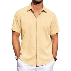 J.VER Men’s Linen Shirts Casual Short Sleeve Button Down Shirt Beach Vacation Cruise Summer Wedding Cotton Tops(Black)