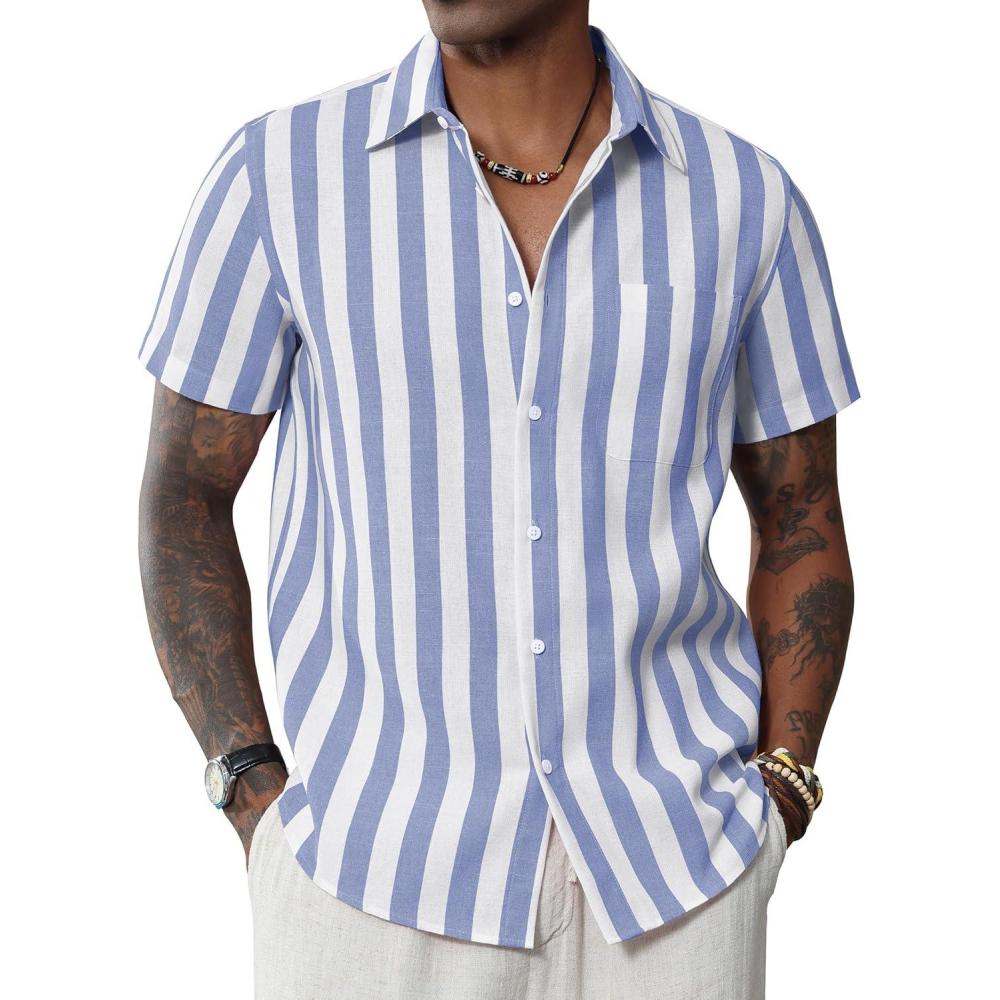 J.VER Men’s Linen Shirts Short Sleeve Casual Striped Button Down Shirt for Summer Beach Yoga