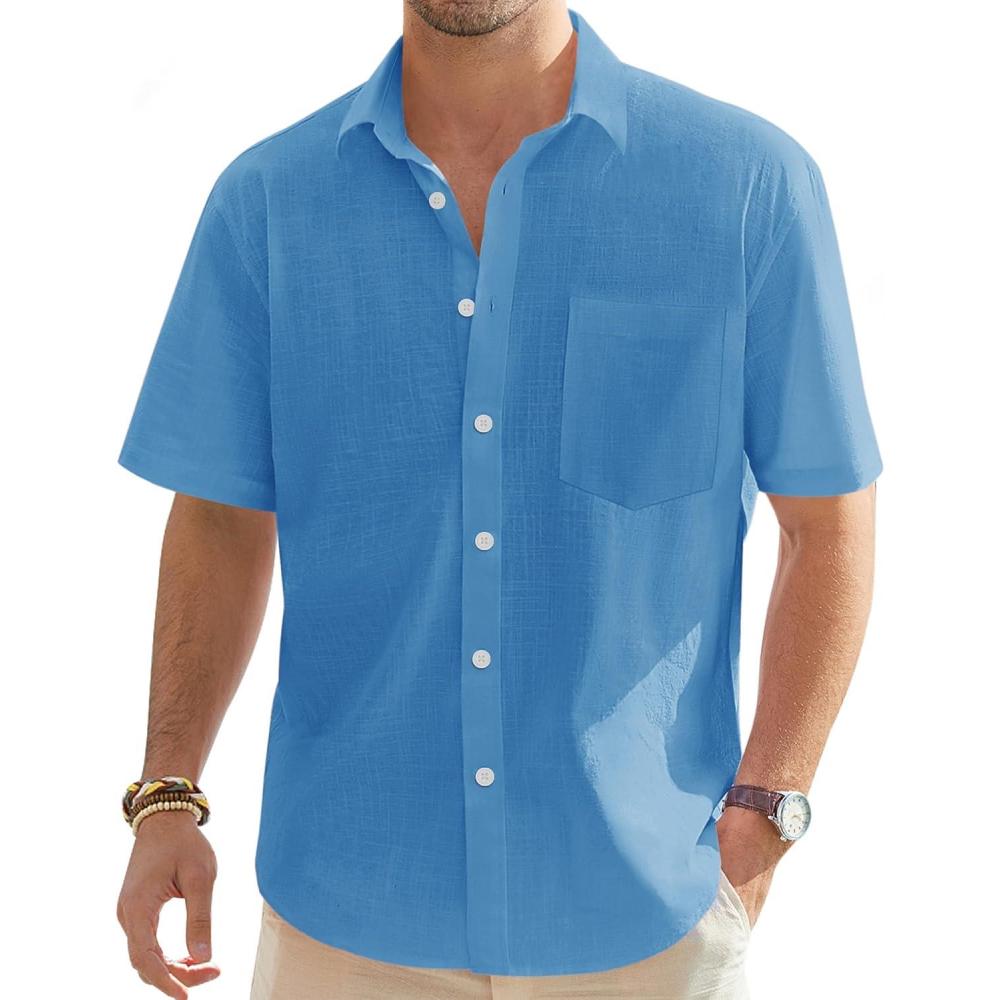 J.VER Men’s Linen Short Sleeve Shirts Cotton Casual Lightweight Button Down Shirt Beach Vacation Summer Tops with Pocket(Cobalt Blue)