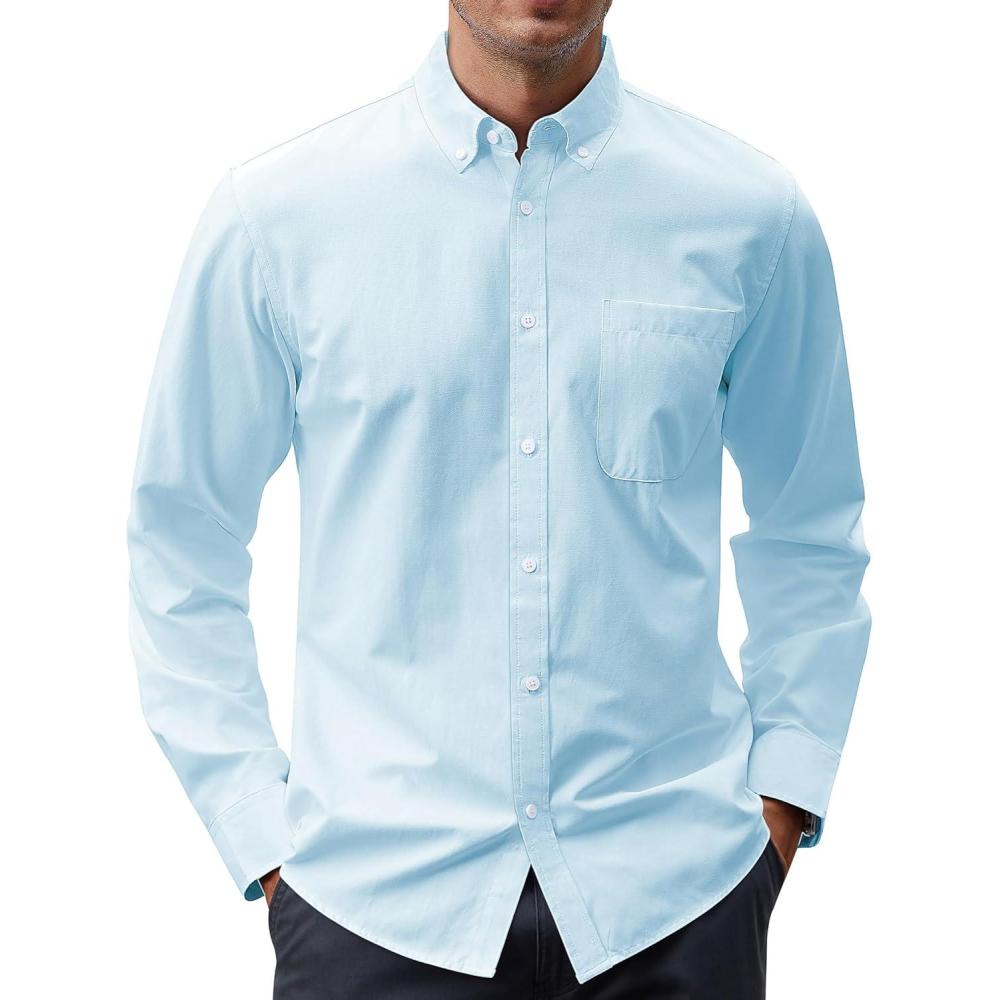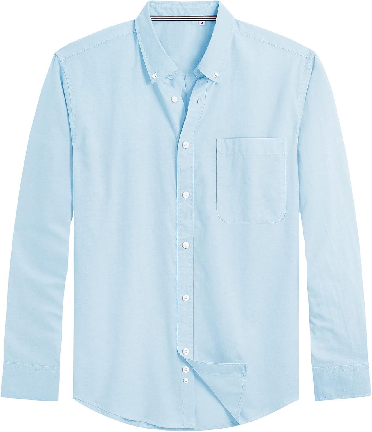 J.VER Men’s Oxford Shirt Solid Casual Button Down Collar Shirts Long Sleeve Dress Shirts with Pocket(Aqua)