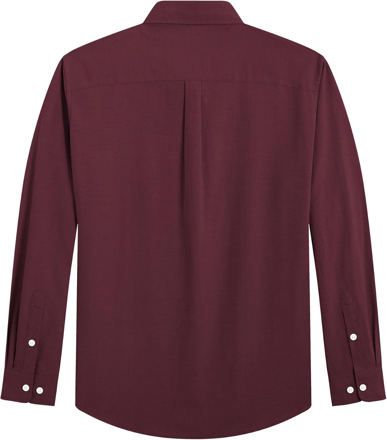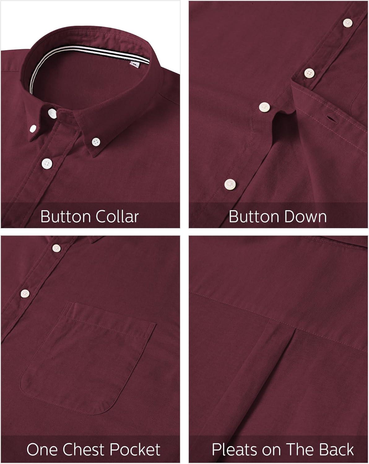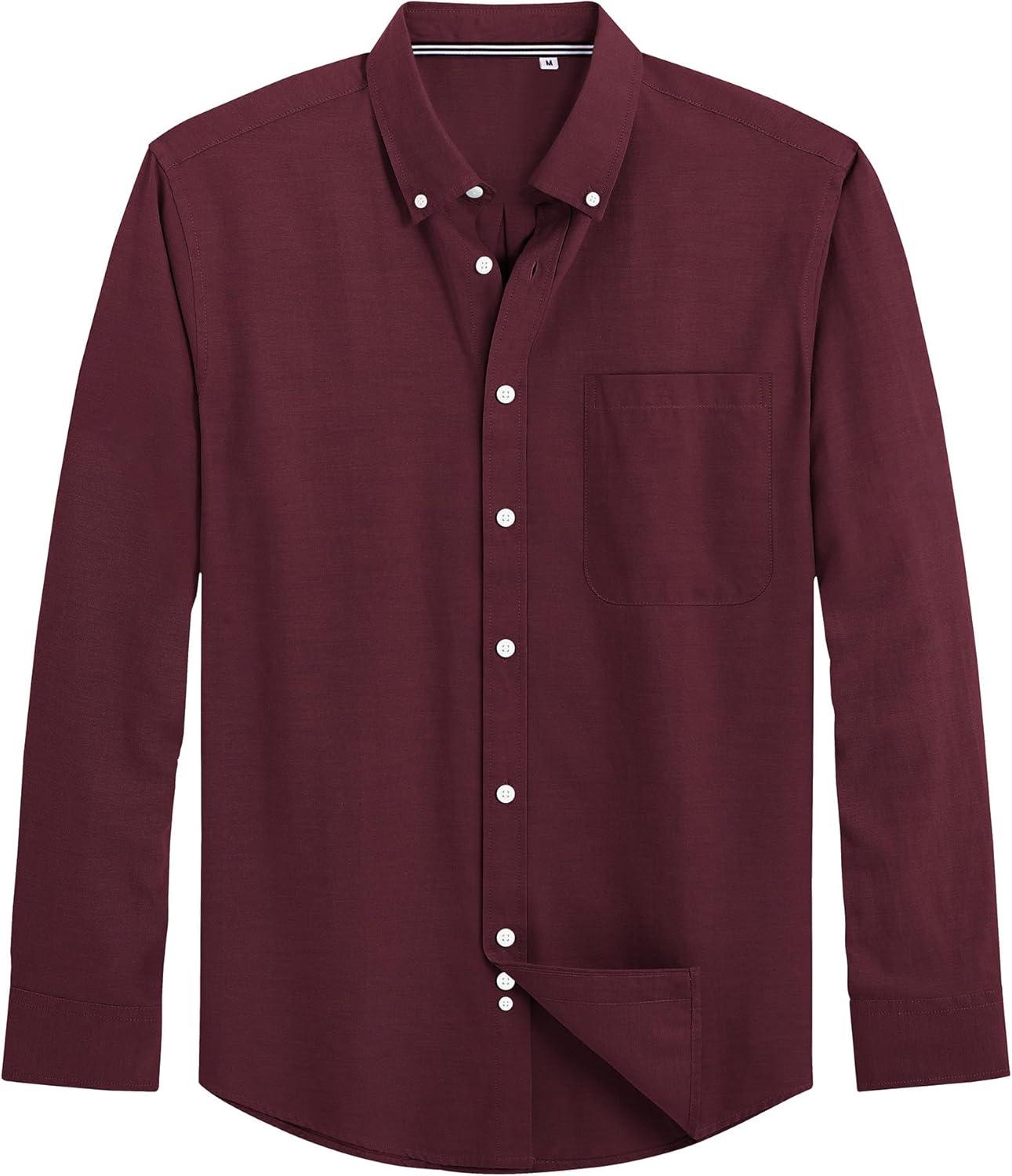 J.VER Men’s Oxford Shirt Solid Casual Button Down Collar Shirts Long Sleeve Dress Shirts with Pocket(Burgundy)