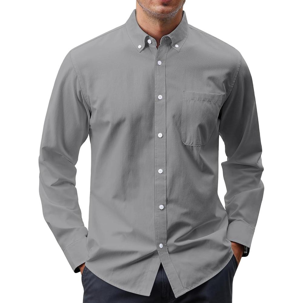 J.VER Men’s Oxford Shirt Solid Casual Button Down Collar Shirts Long Sleeve Dress Shirts with Pocket(Charcoal Grey)