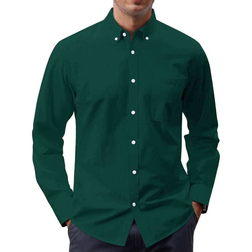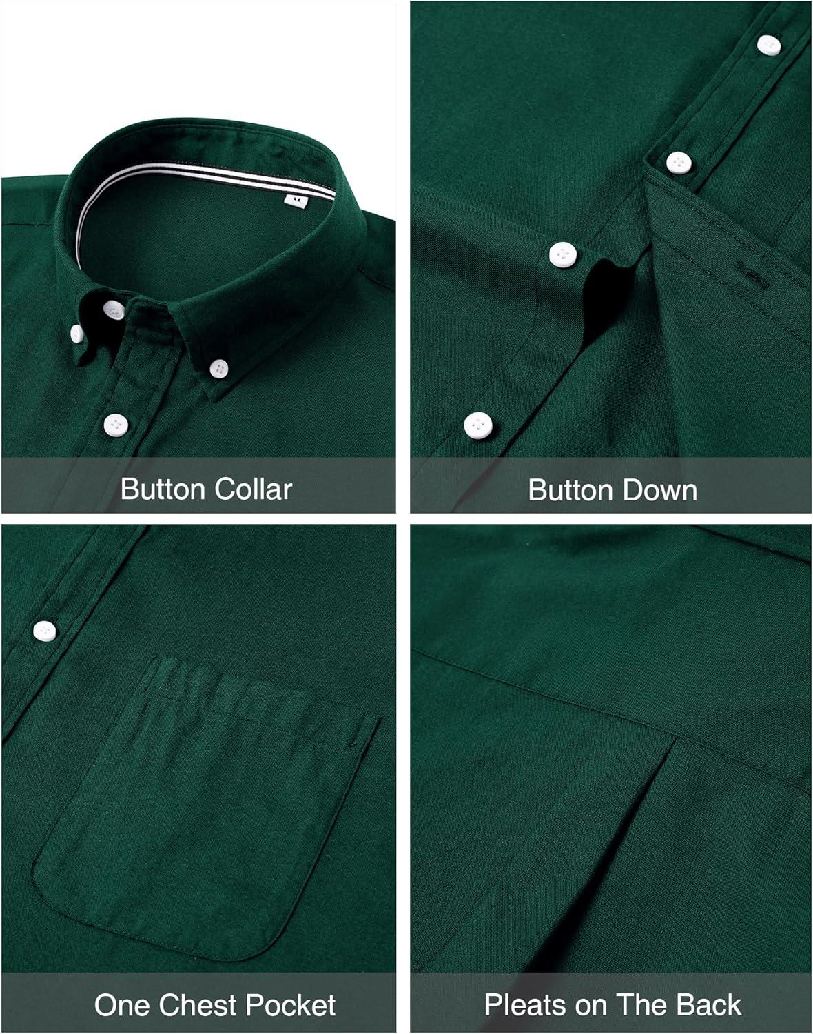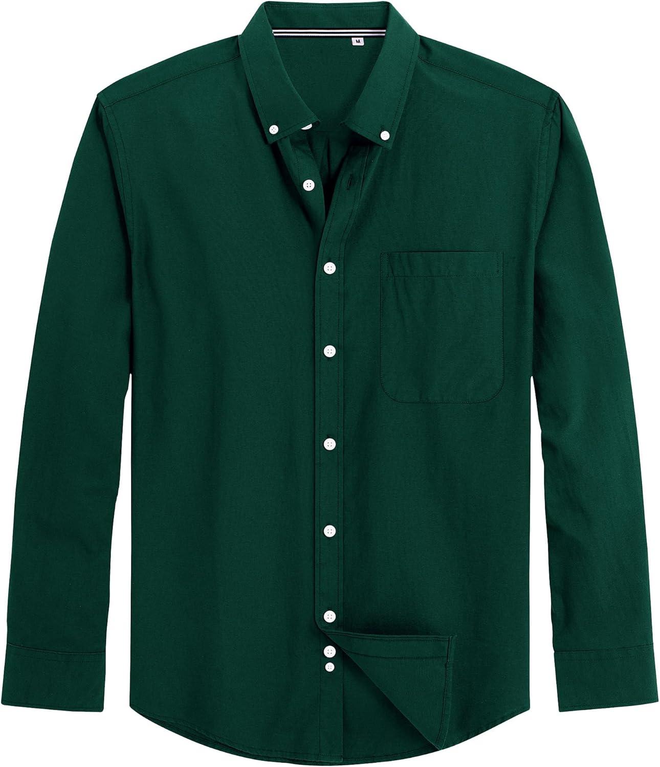 J.VER Men’s Oxford Shirt Solid Casual Button Down Collar Shirts Long Sleeve Dress Shirts with Pocket(Green)