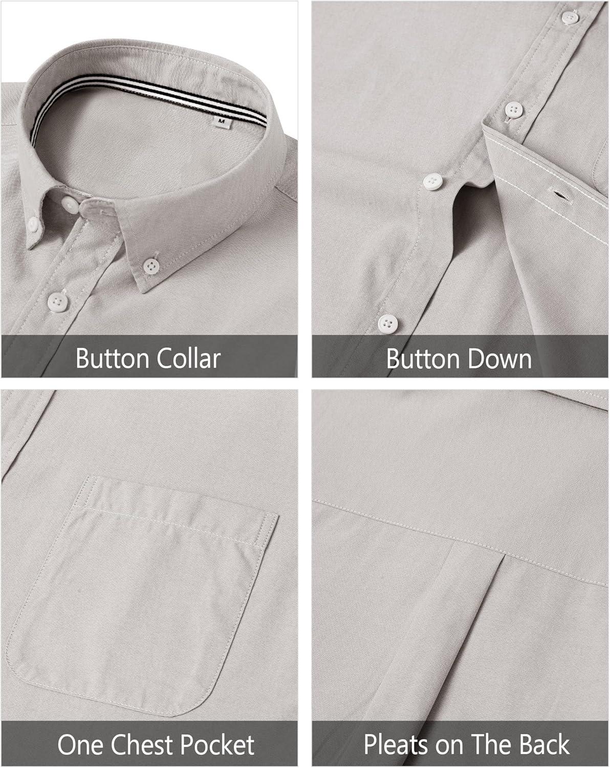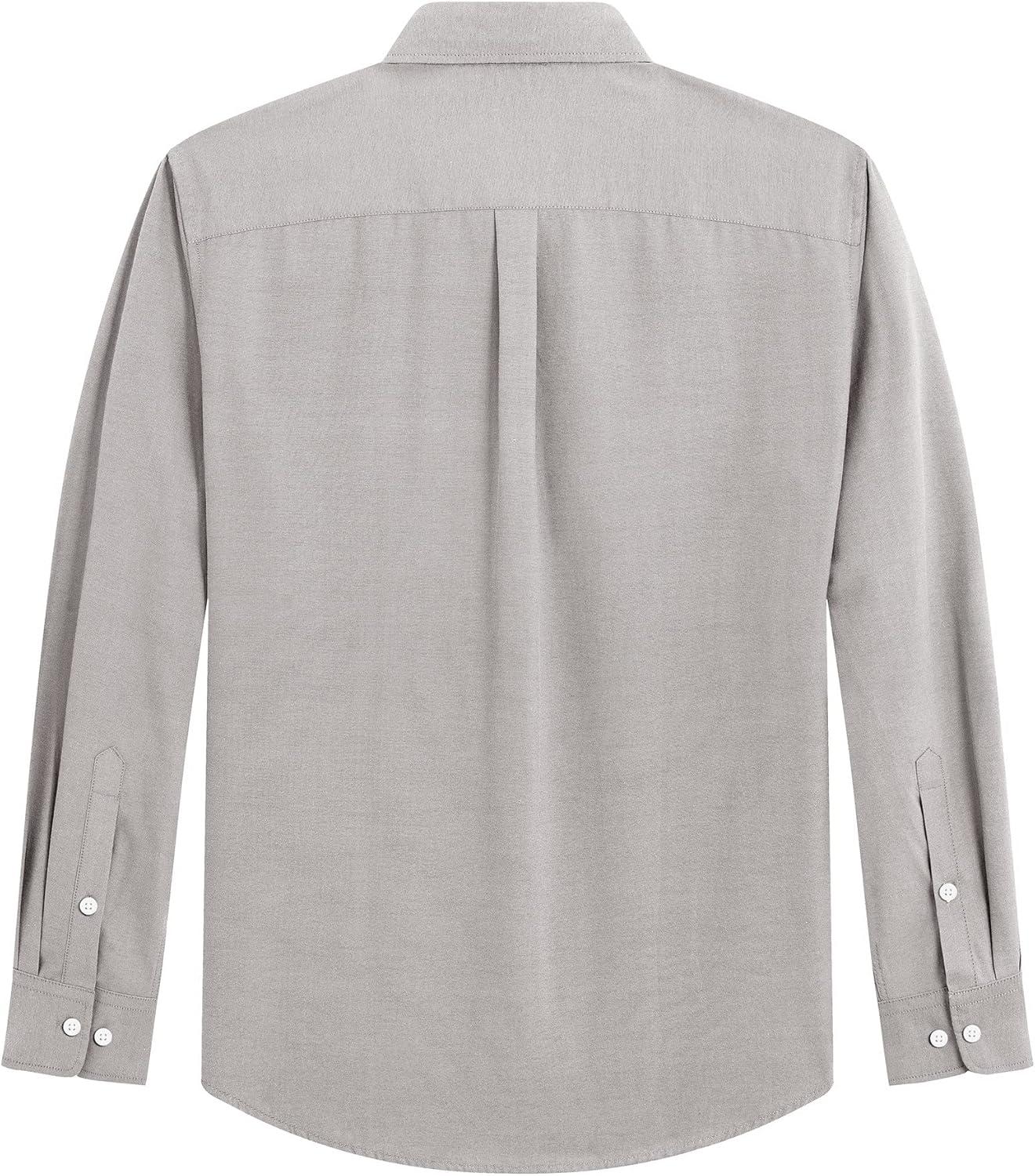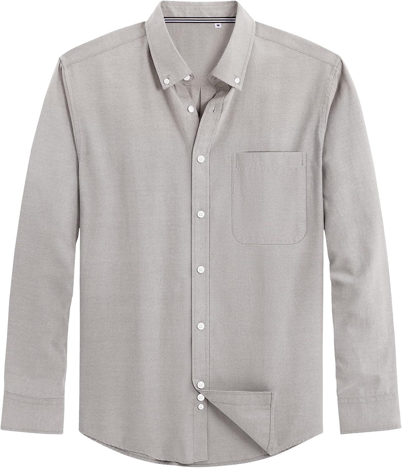 J.VER Men’s Oxford Shirt Solid Casual Button Down Collar Shirts Long Sleeve Dress Shirts with Pocket(Grey Khaki)