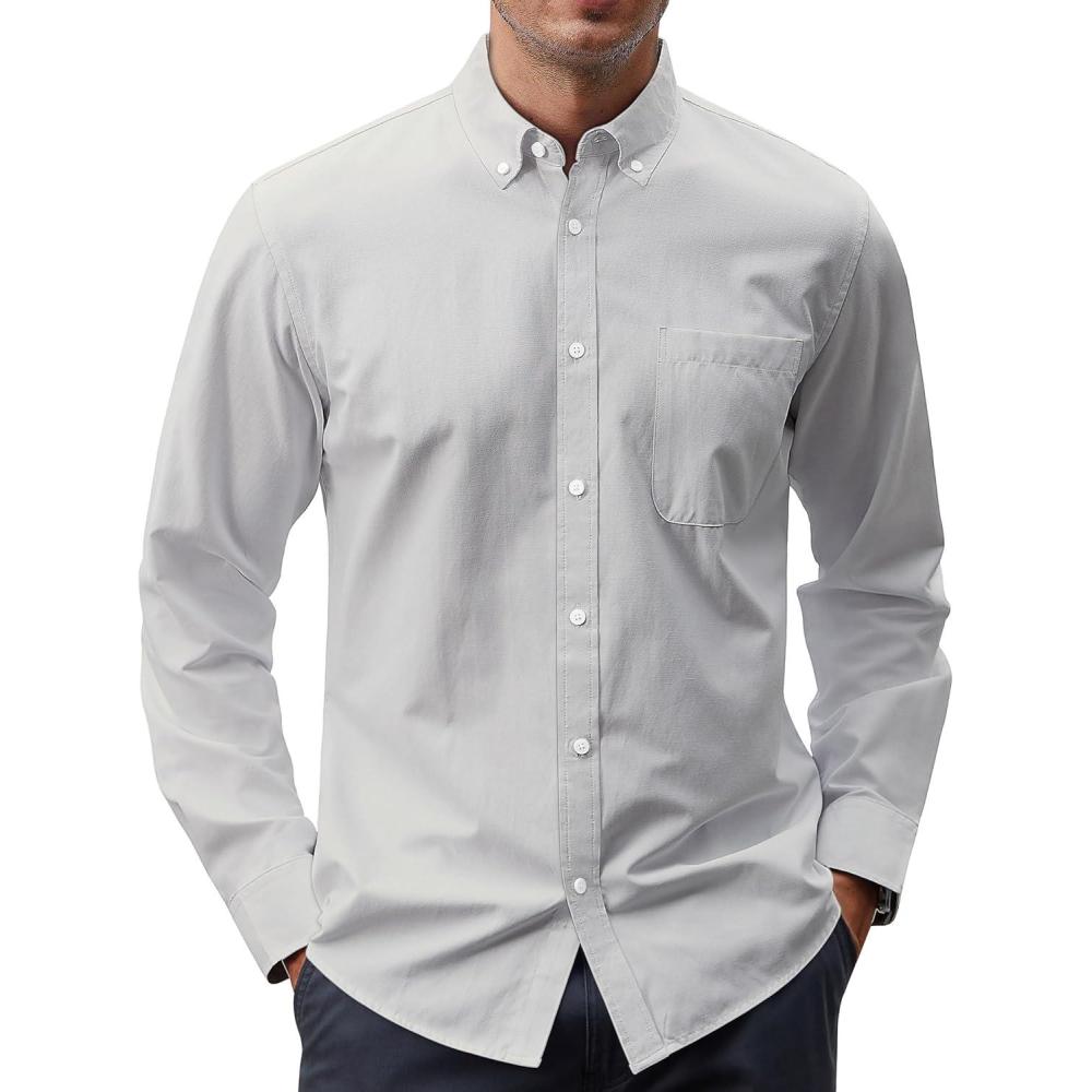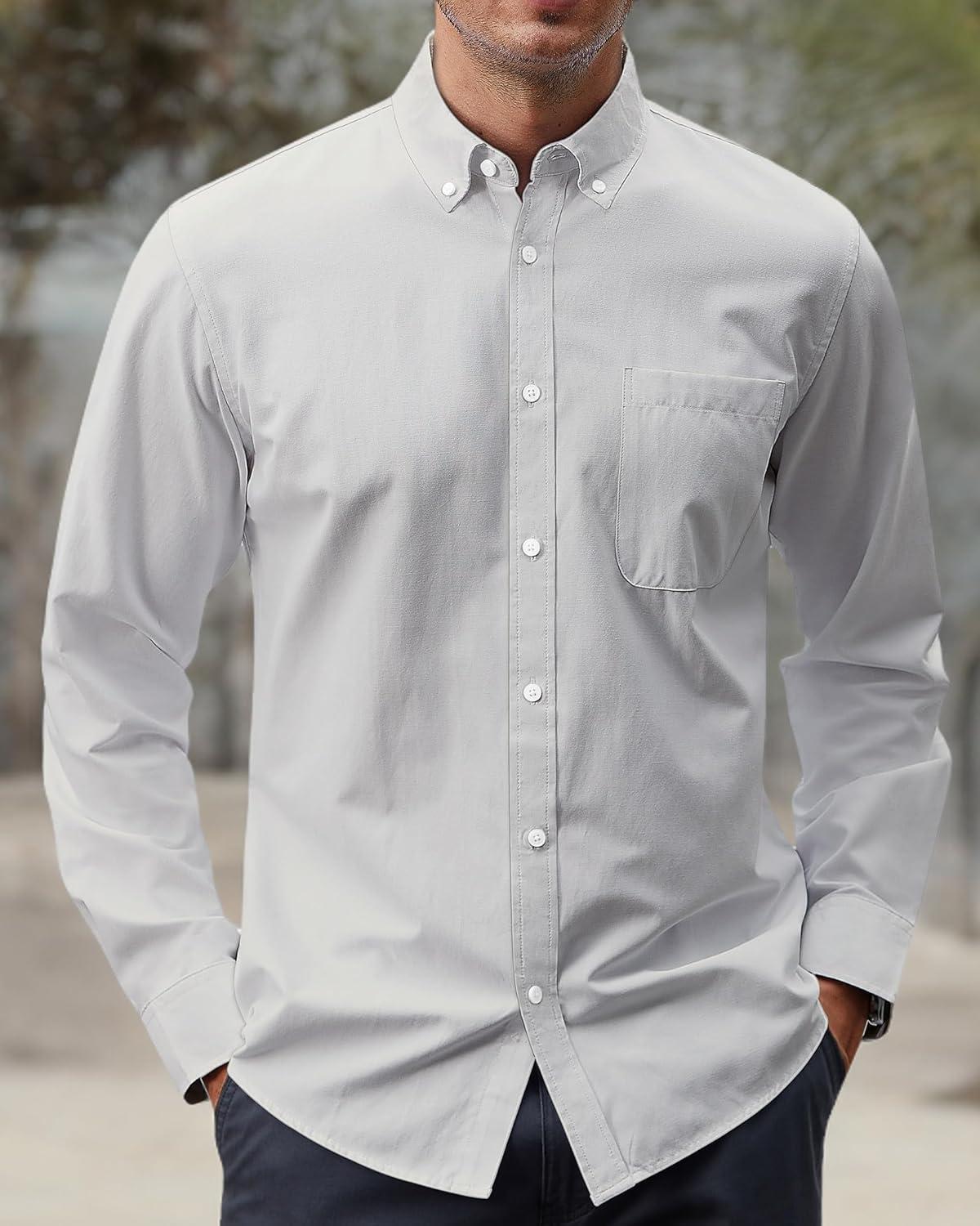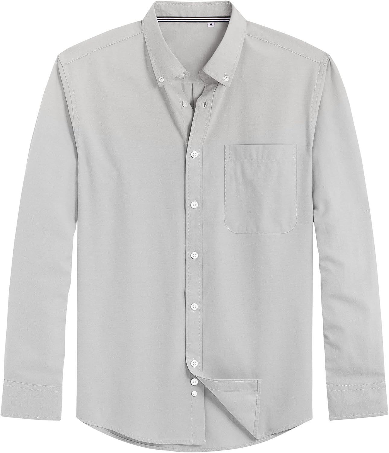 J.VER Men’s Oxford Shirt Solid Casual Button Down Collar Shirts Long Sleeve Dress Shirts with Pocket(Grey)