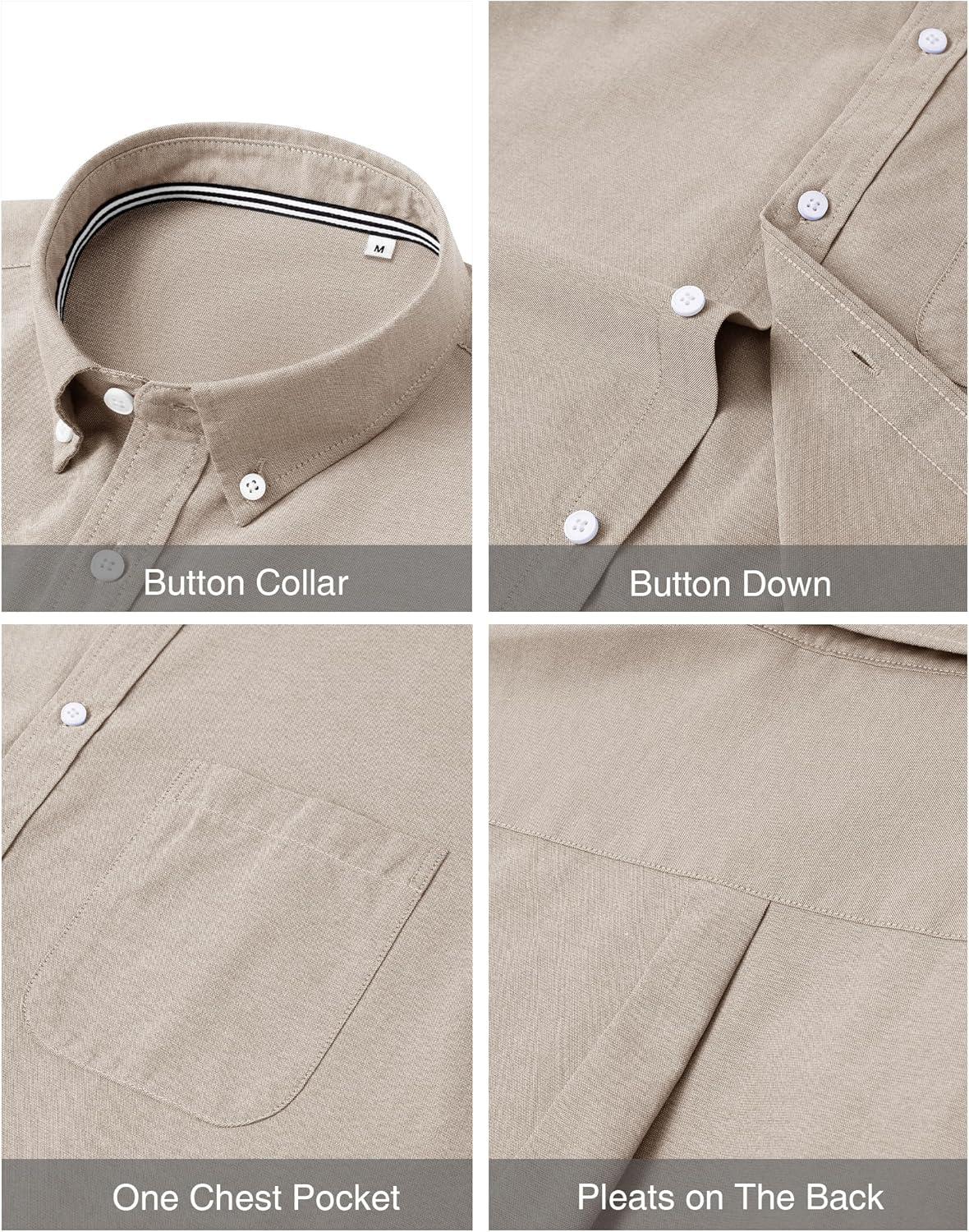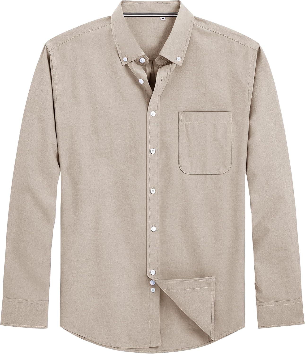 J.VER Men’s Oxford Shirt Solid Casual Button Down Collar Shirts Long Sleeve Dress Shirts with Pocket(Light Brown)