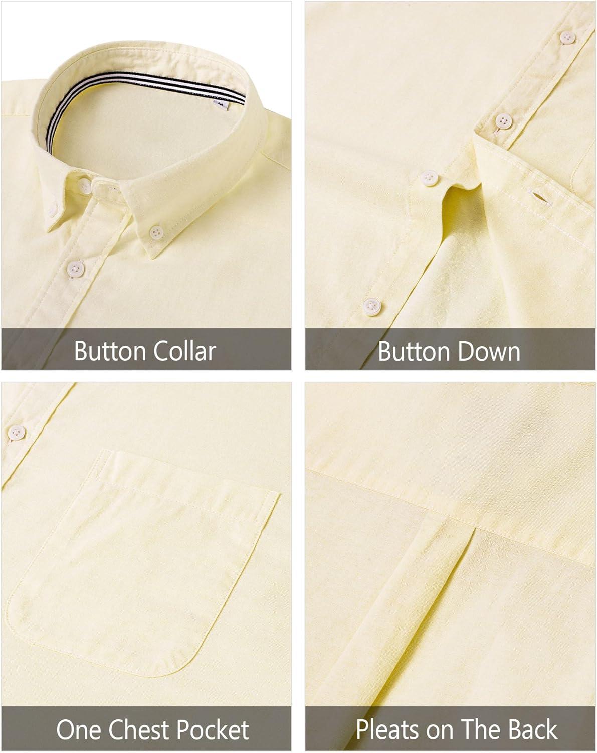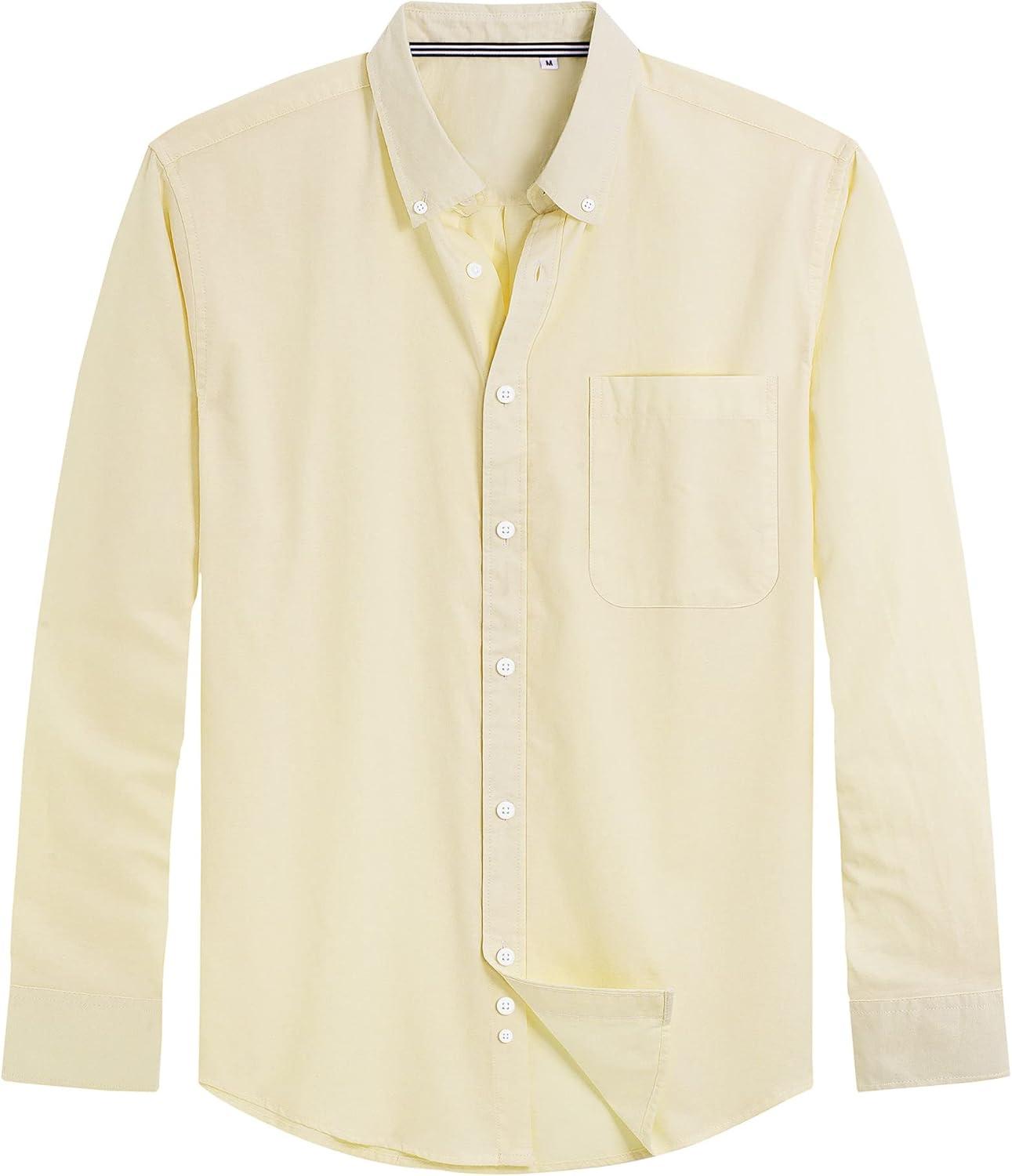 J.VER Men’s Oxford Shirt Solid Casual Button Down Collar Shirts Long Sleeve Dress Shirts with Pocket(Light Yellow)