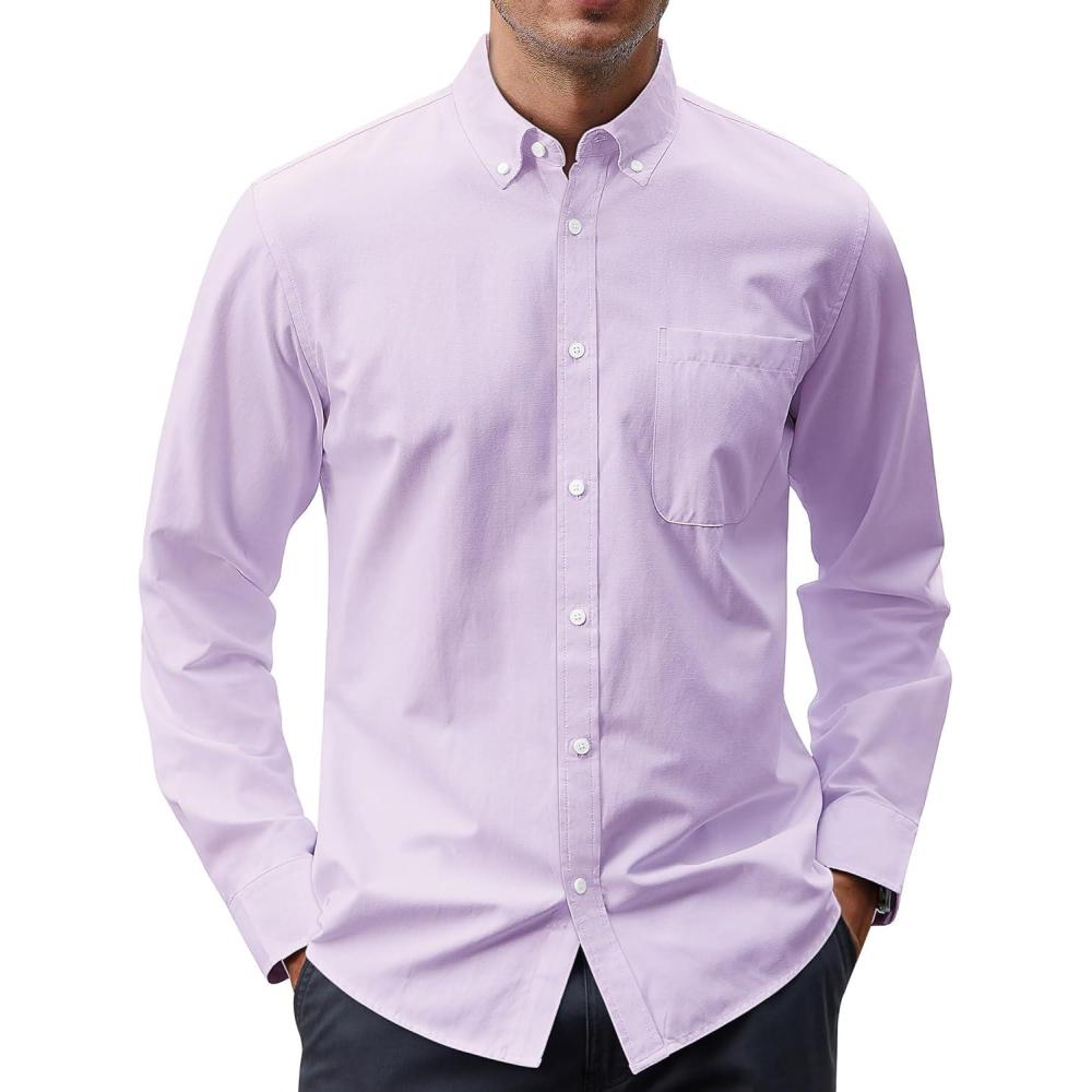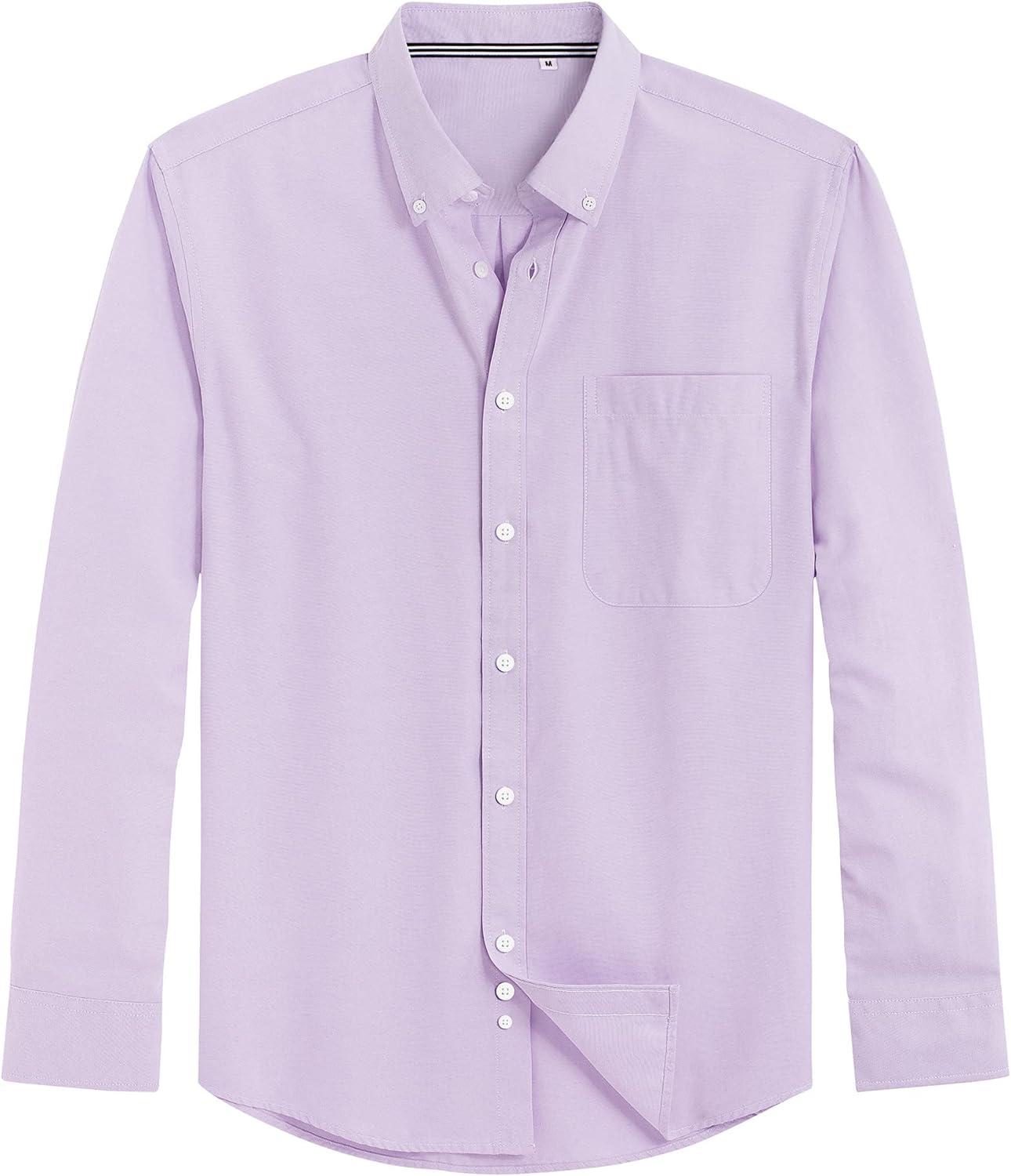 J.VER Men’s Oxford Shirt Solid Casual Button Down Collar Shirts Long Sleeve Dress Shirts with Pocket(Purple)