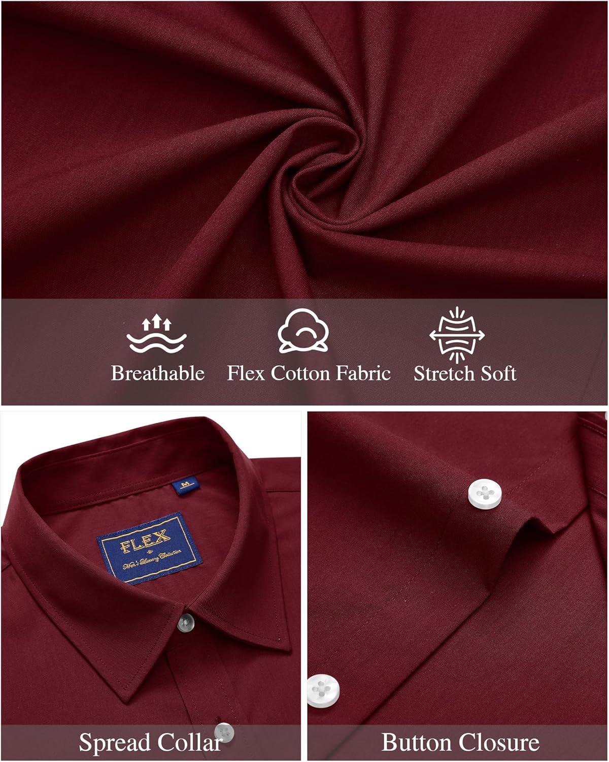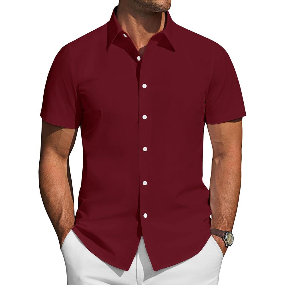 J.VER Mens Short Sleeve Button Down Shirt Stretch Business Casual Dress Shirts Solid Summer Wedding Prom Tops(Burgundy)