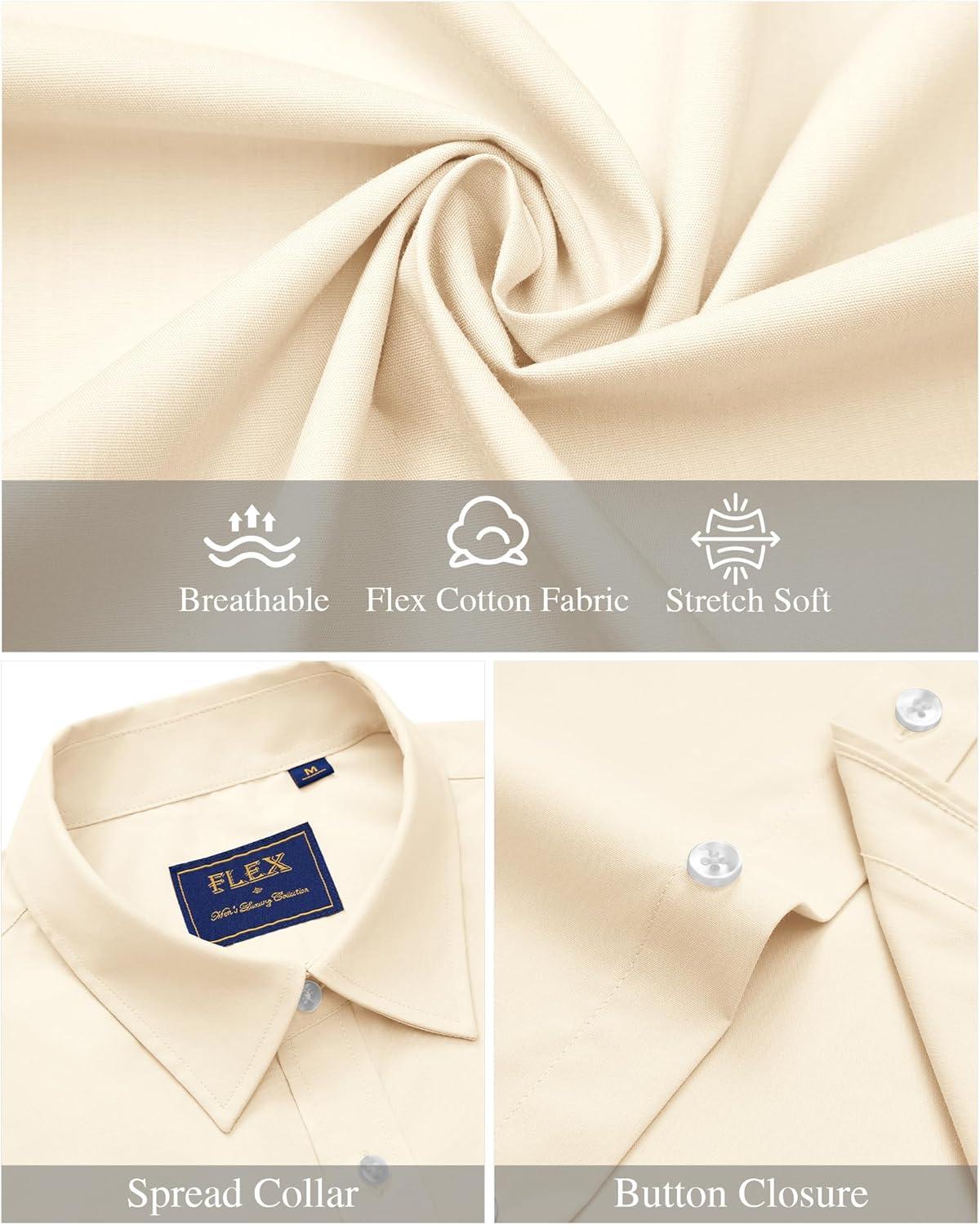 J.VER Mens Short Sleeve Button Down Shirt Stretch Business Casual Dress Shirts Solid Summer Wedding Prom Tops(Cream Ivory)