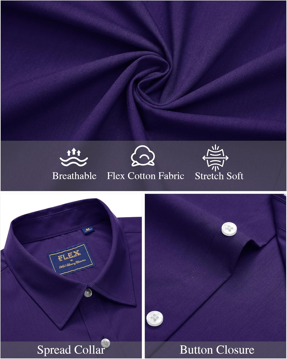 J.VER Mens Short Sleeve Button Down Shirt Stretch Business Casual Dress Shirts Solid Summer Wedding Prom Tops(Dark Purple)