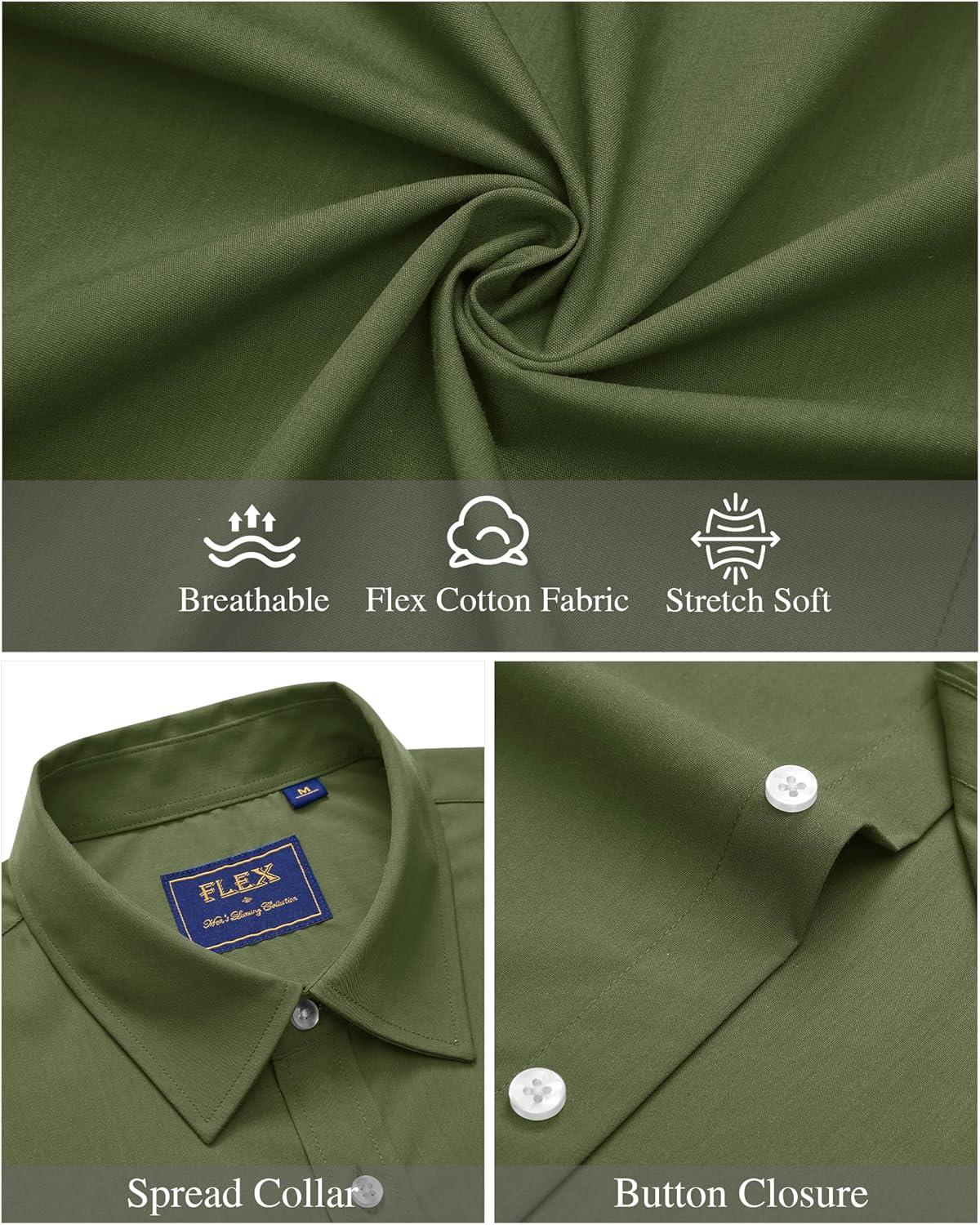 J.VER Mens Short Sleeve Button Down Shirt Stretch Business Casual Dress Shirts Solid Summer Wedding Prom Tops(Green)