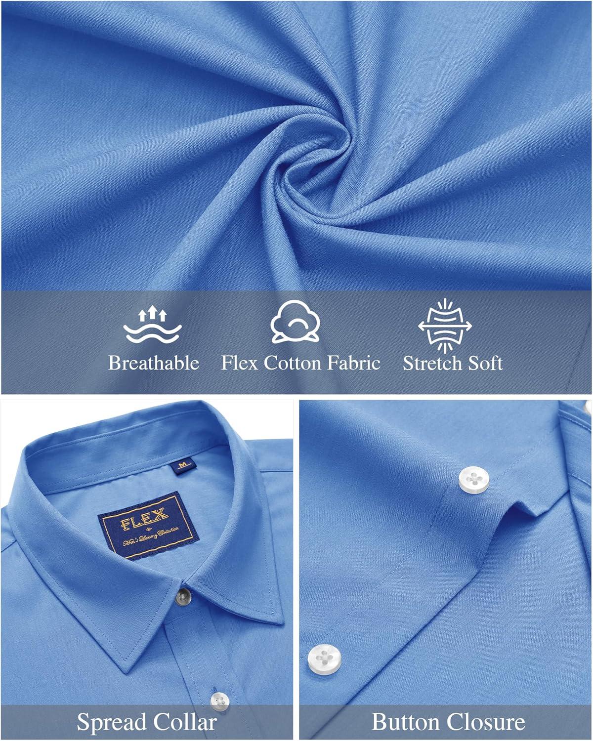 J.VER Mens Short Sleeve Button Down Shirt Stretch Business Casual Dress Shirts Solid Summer Wedding Prom Tops(Misty Blue)