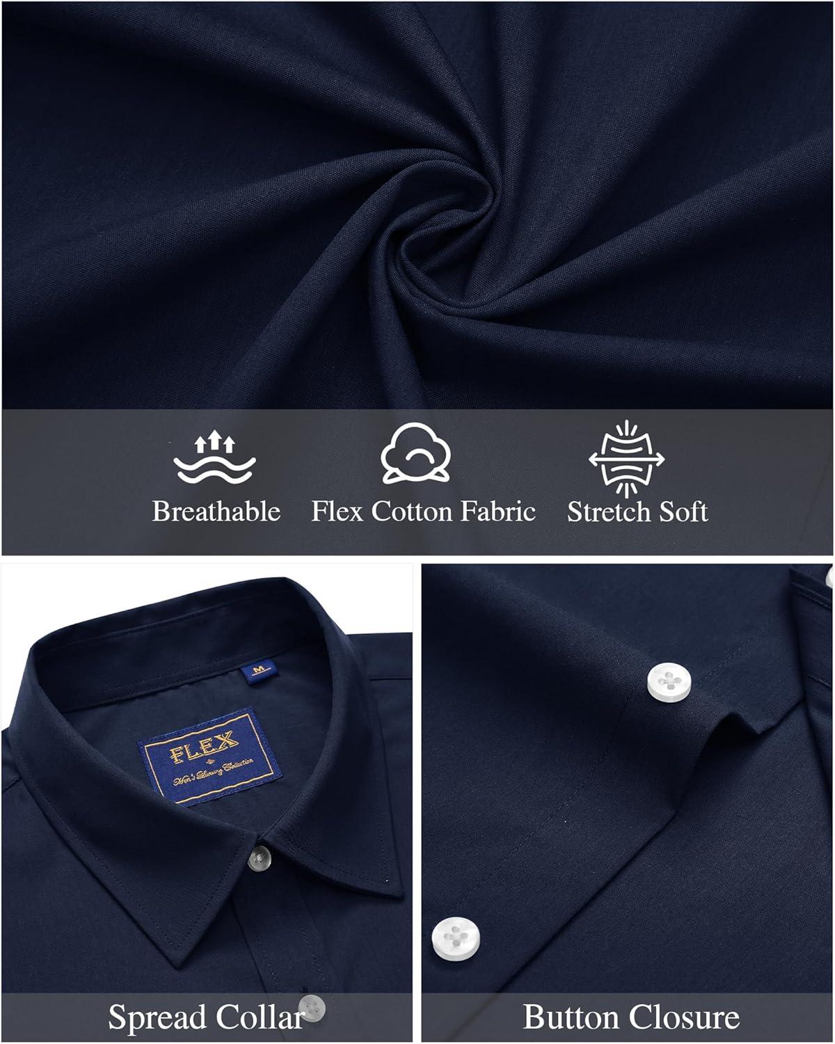 J.VER Mens Short Sleeve Button Down Shirt Stretch Business Casual Dress Shirts Solid Summer Wedding Prom Tops(Navy Blue)