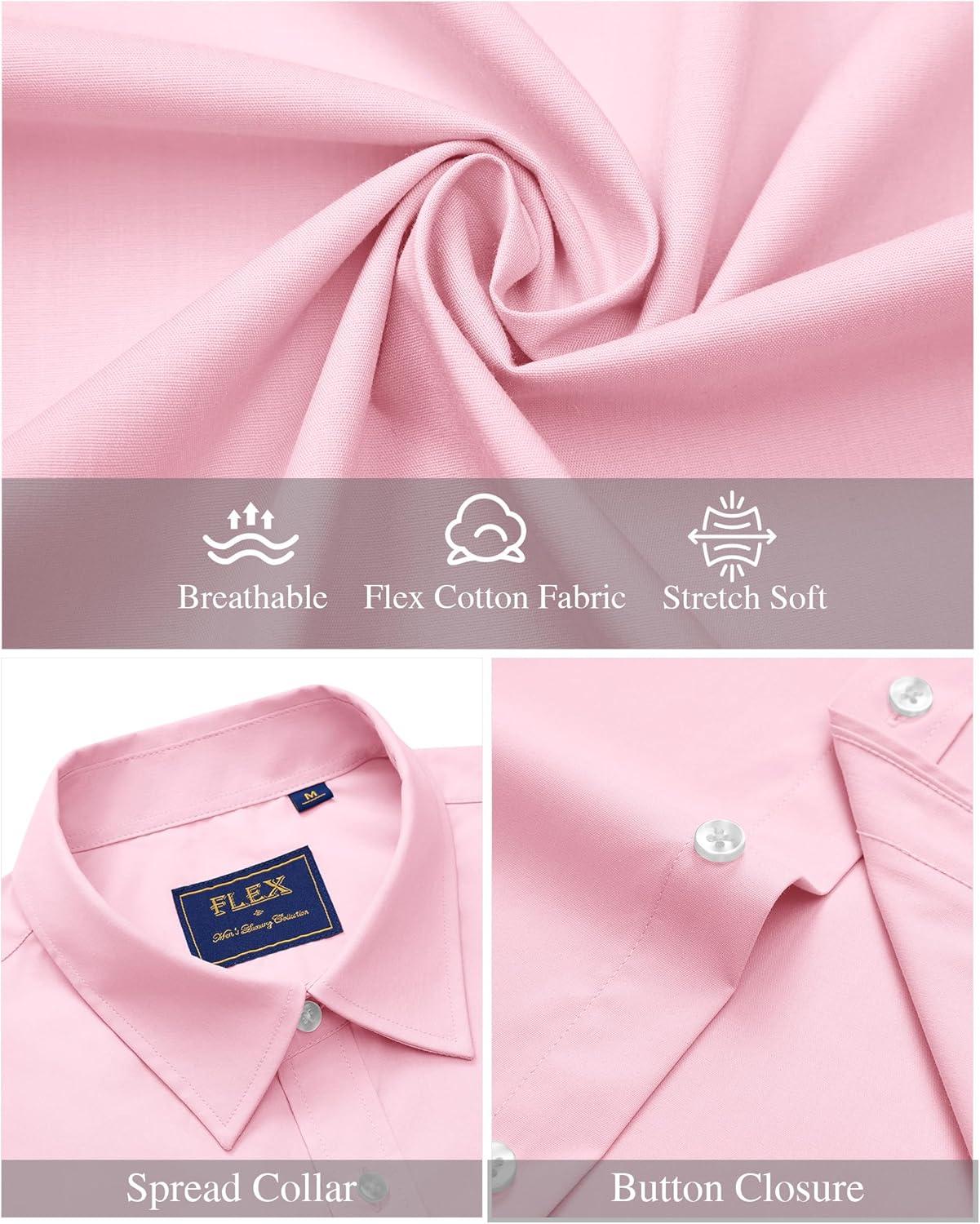 J.VER Mens Short Sleeve Button Down Shirt Stretch Business Casual Dress Shirts Solid Summer Wedding Prom Tops(Pink)
