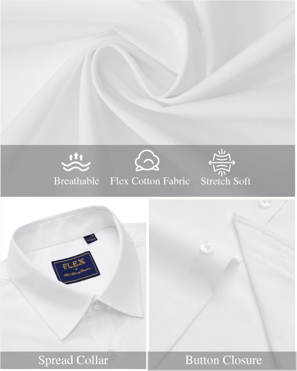 J.VER Mens Short Sleeve Button Down Shirt Stretch Business Casual Dress Shirts Solid Summer Wedding Prom Tops(White)